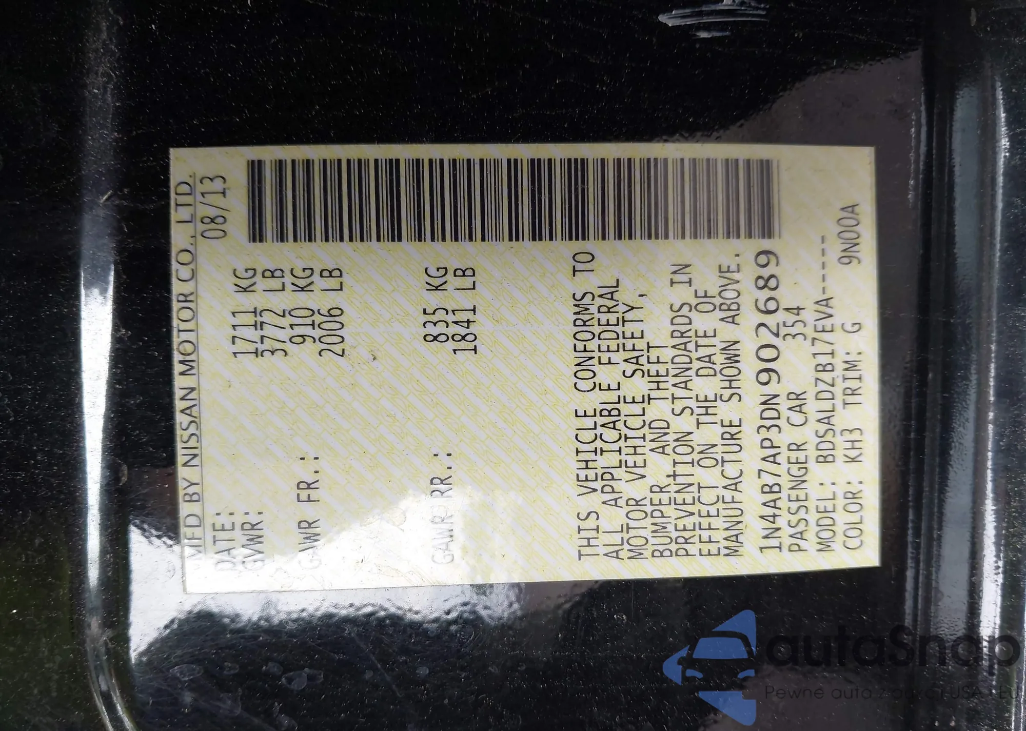 VIN: 1N4AB7AP3DN902689