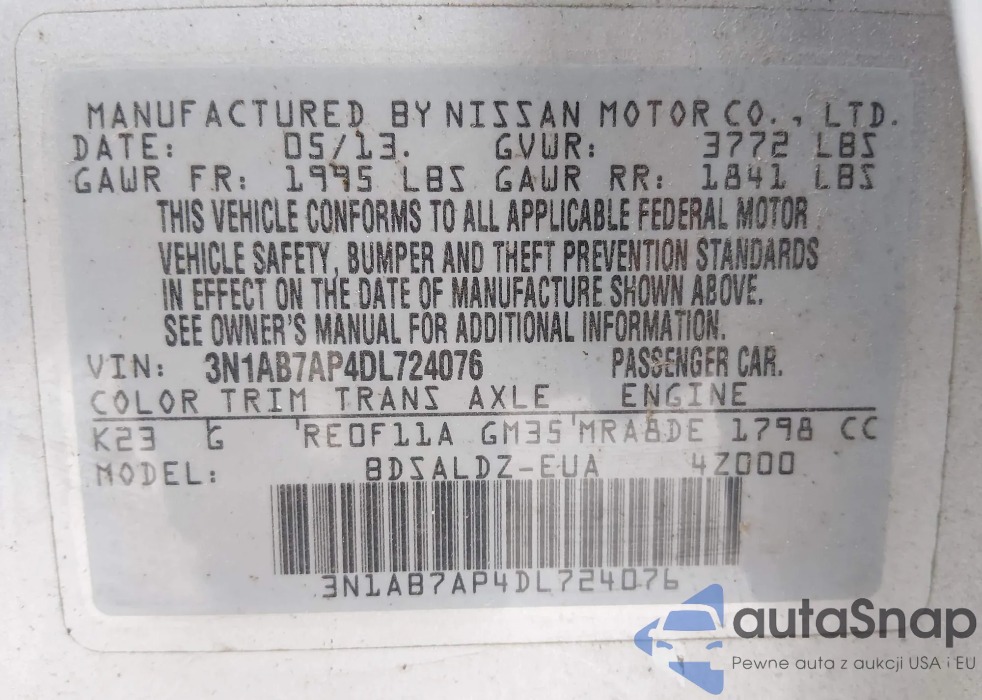 VIN: 3N1AB7AP4DL724076