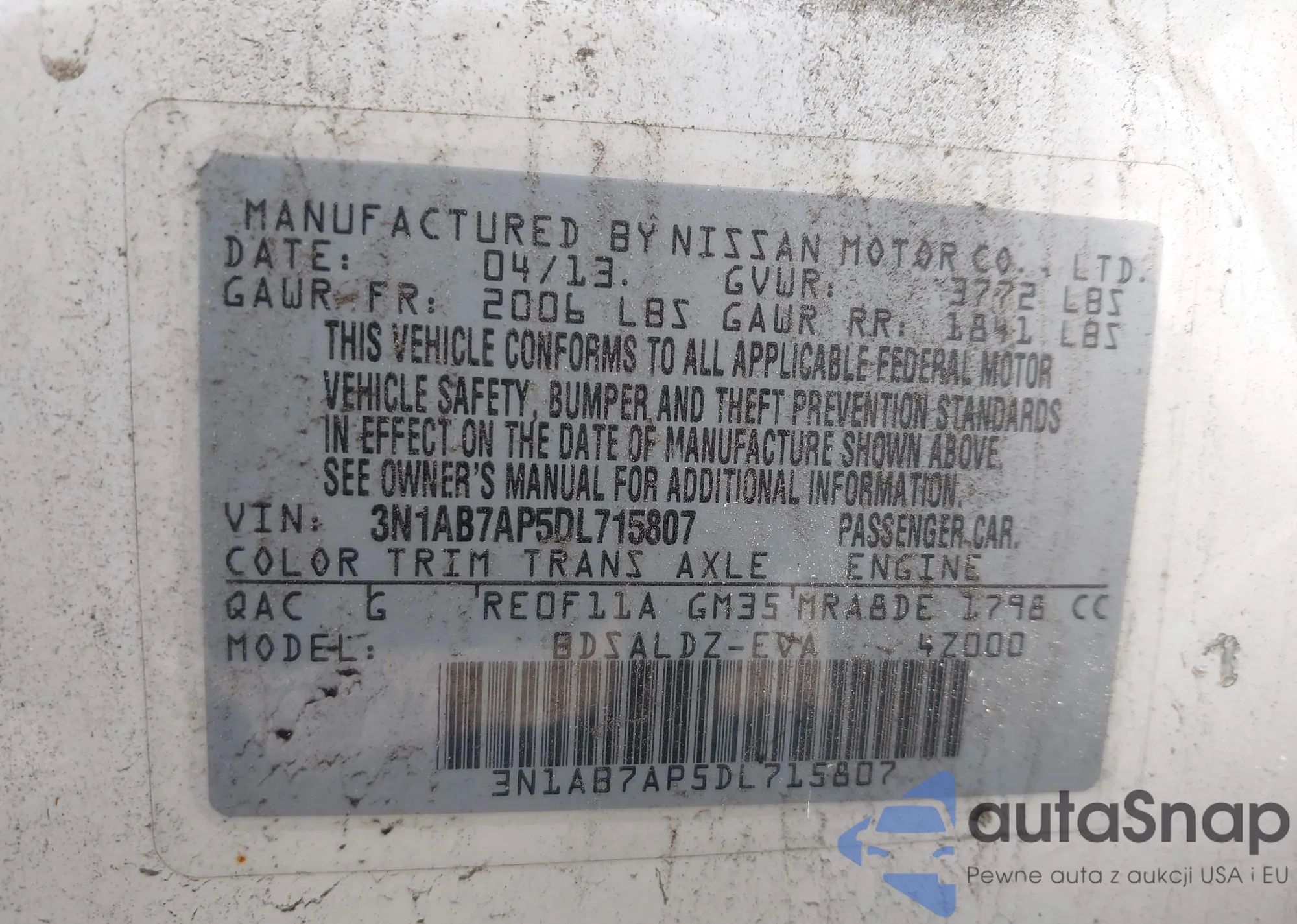 VIN: 3N1AB7AP5DL715807