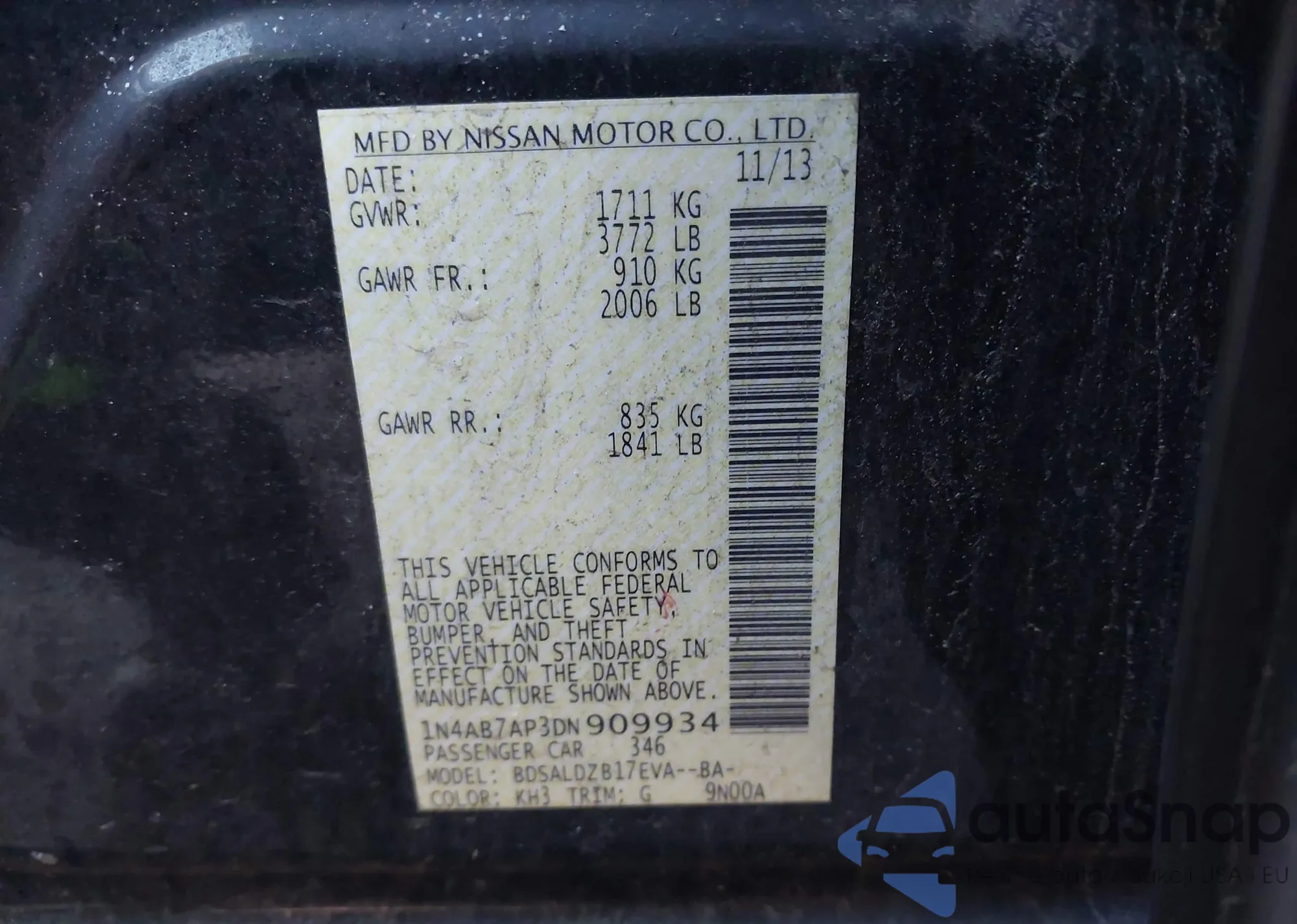 VIN: 1N4AB7AP3DN909934