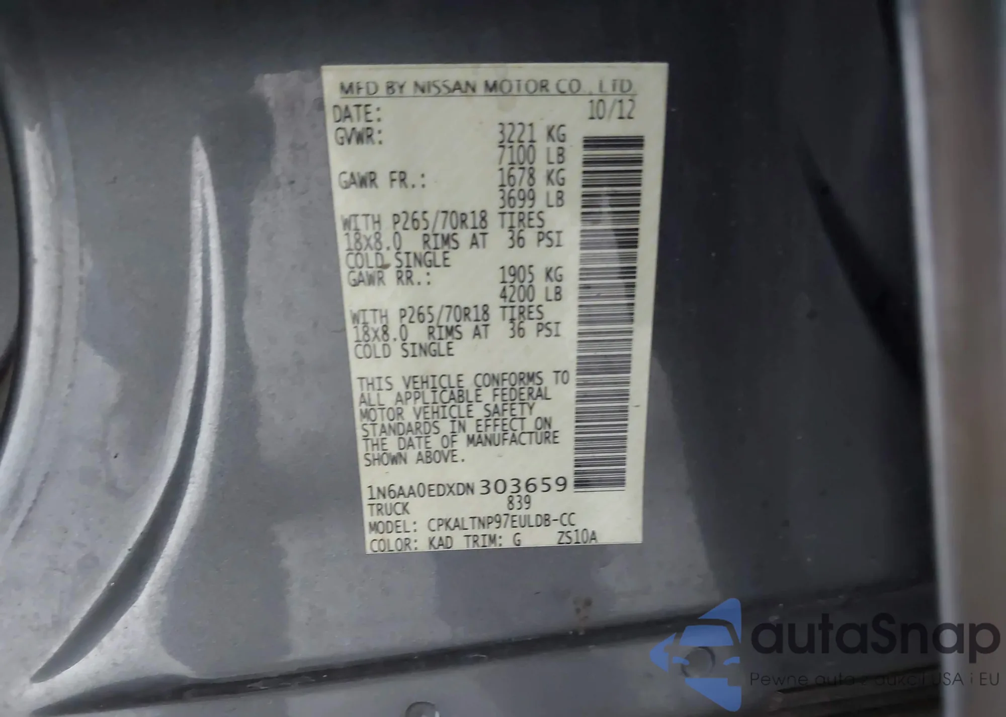 VIN: 1N6AA0EDXDN303659