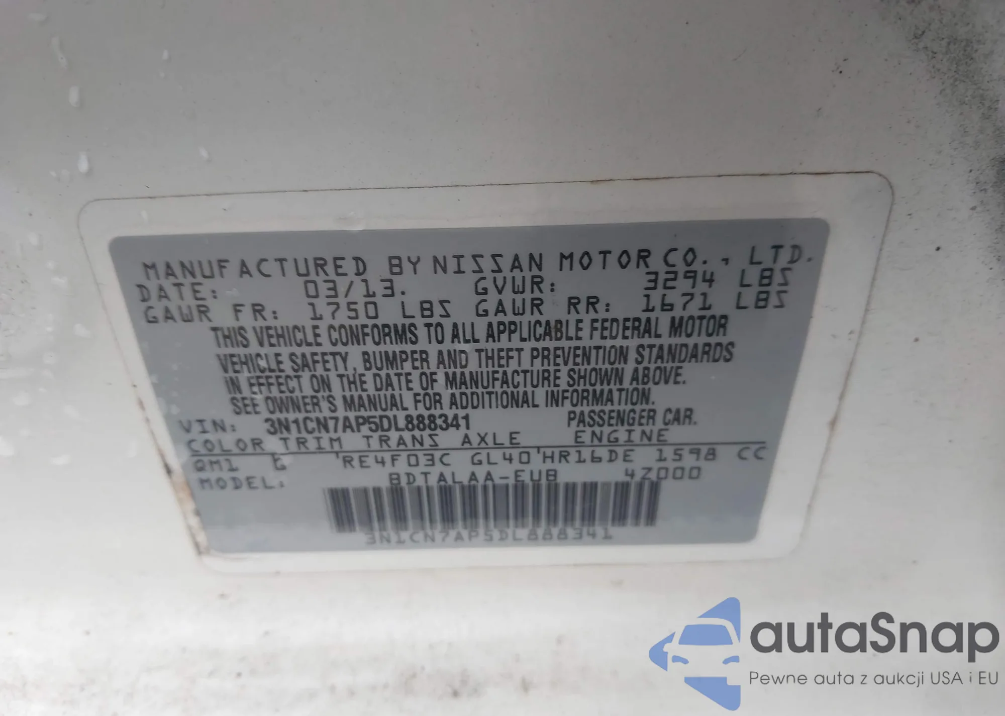 VIN: 3N1CN7AP5DL888341