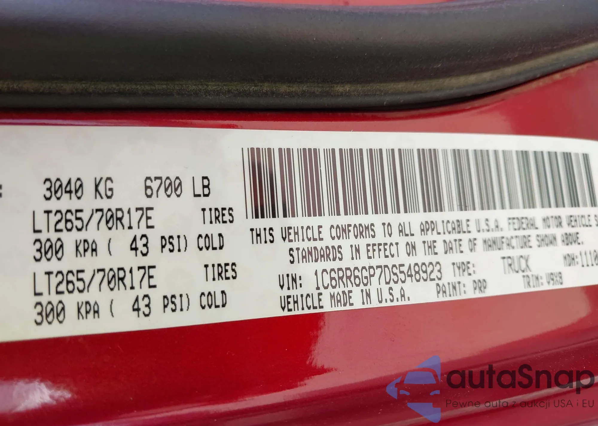 VIN: 1C6RR6GP7DS548923