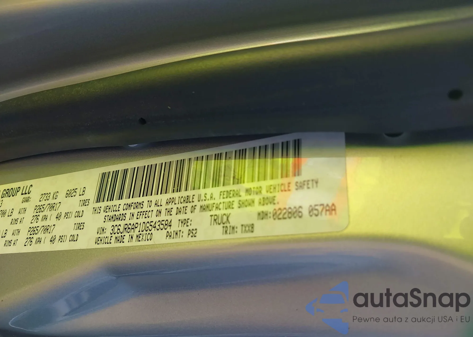 VIN: 3C6JR6AP1DG543584