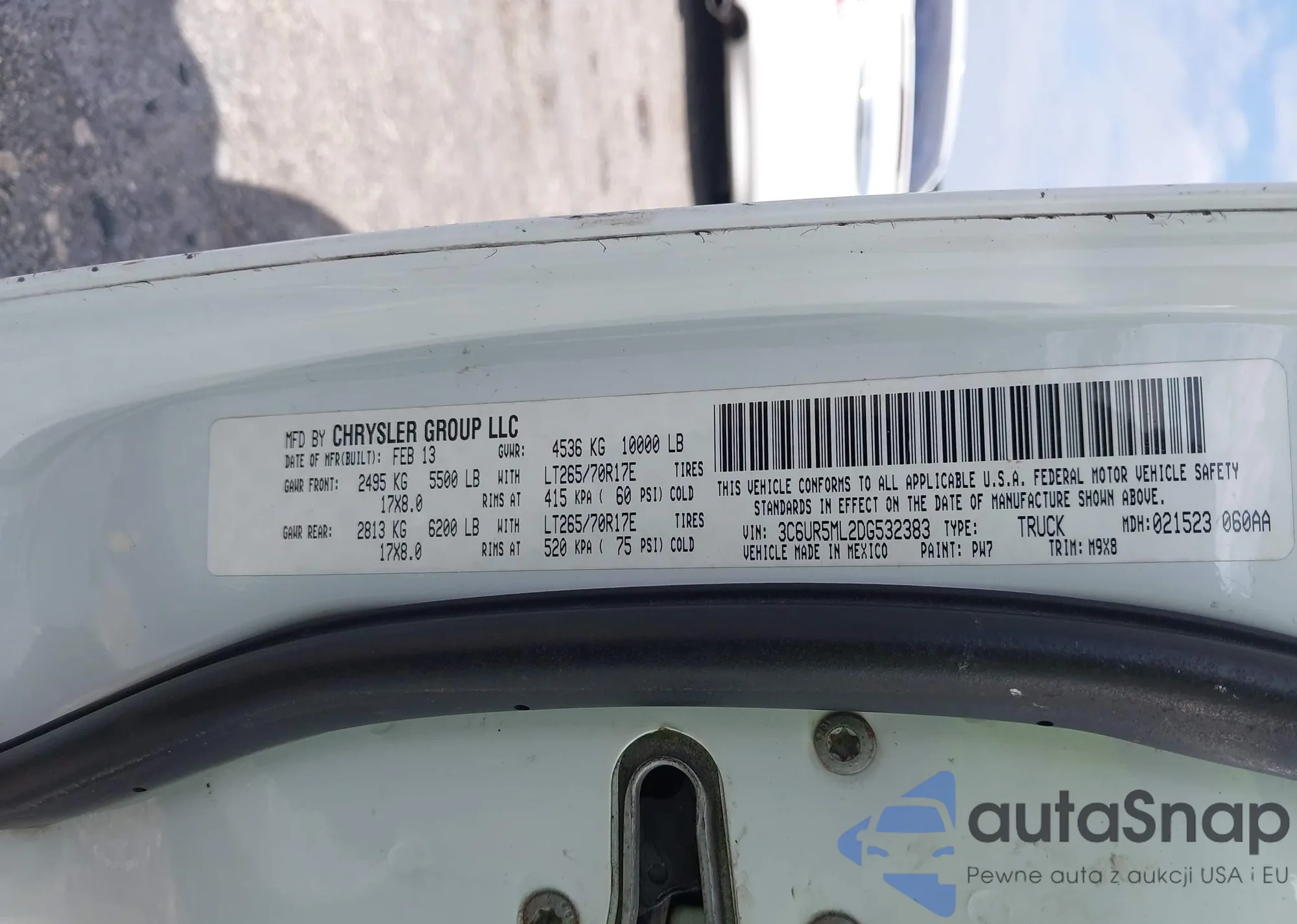 VIN: 3C6UR5ML2DG532383