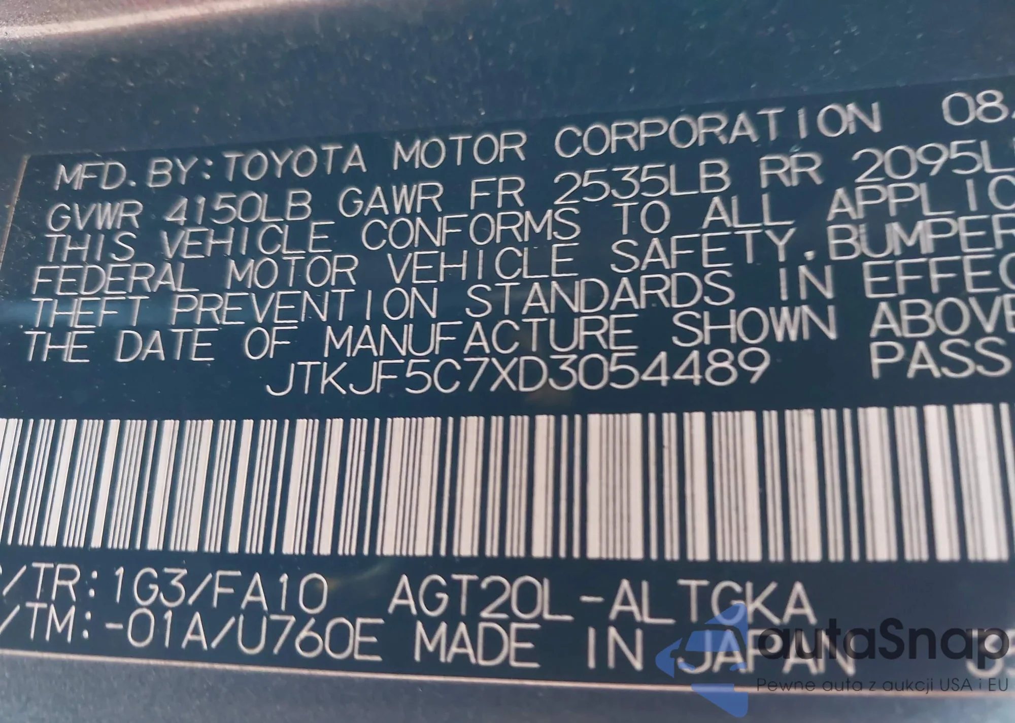 • VIN: JTKJF5C7XD3054489