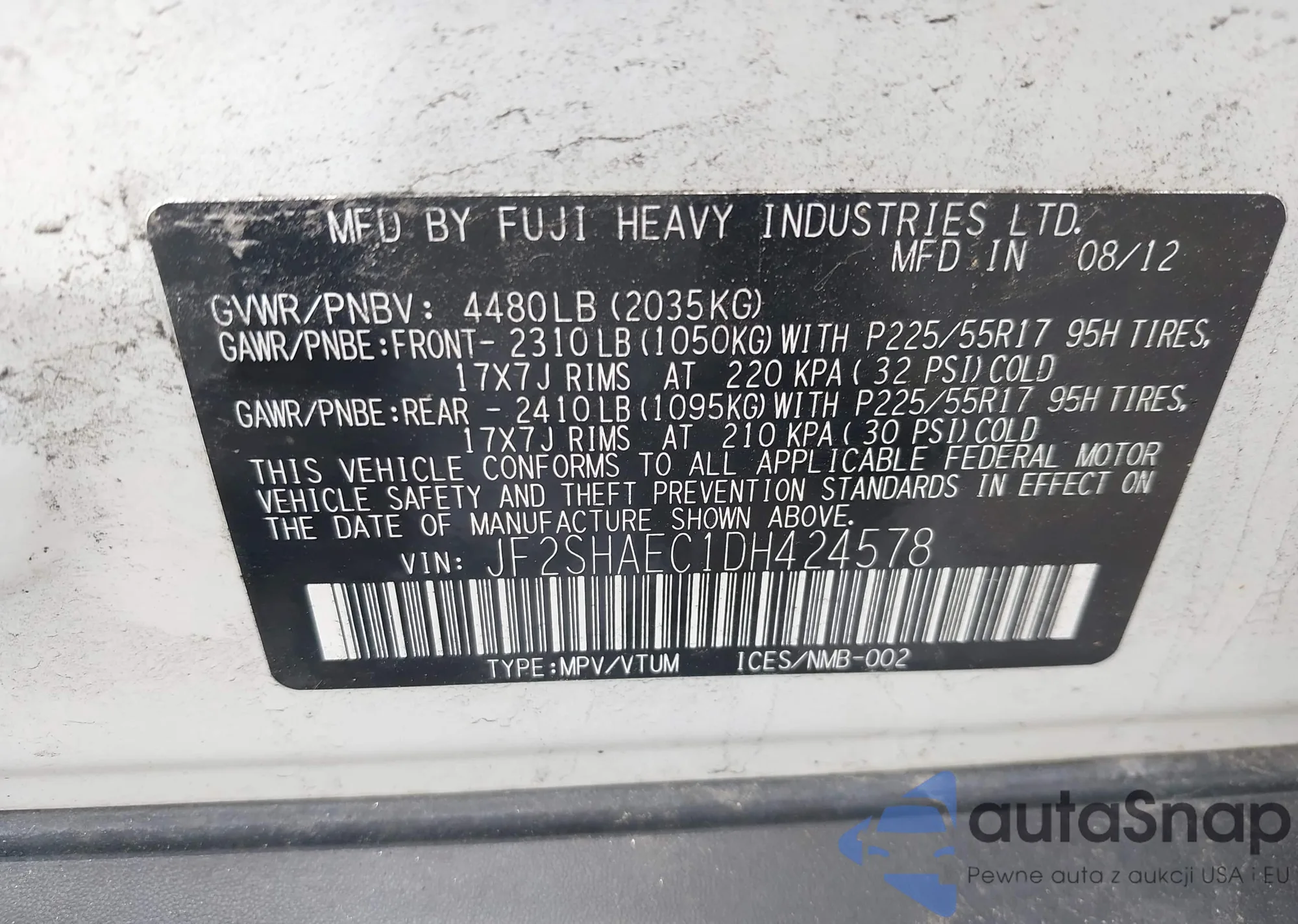 VIN: JF2SHAEC1DH424578