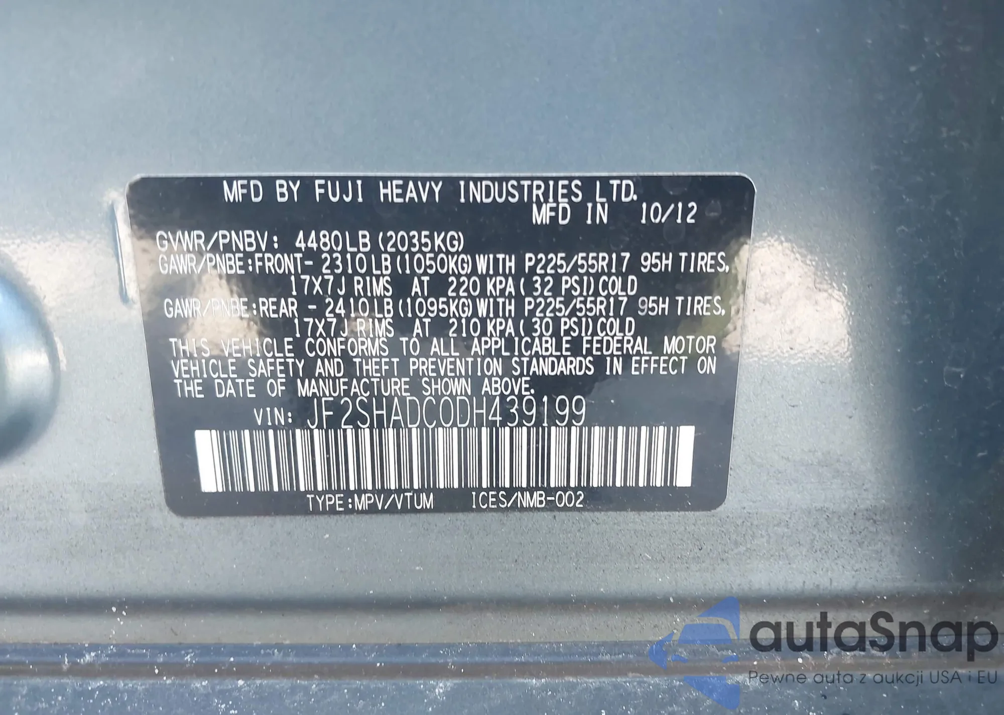 VIN: JF2SHADC0DH439199