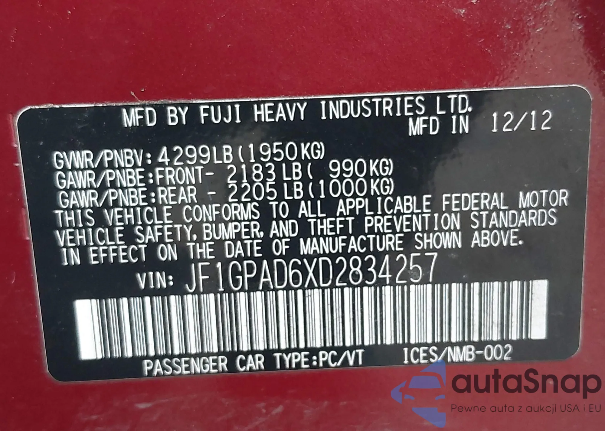 • VIN: JF1GPAD6XD2834257