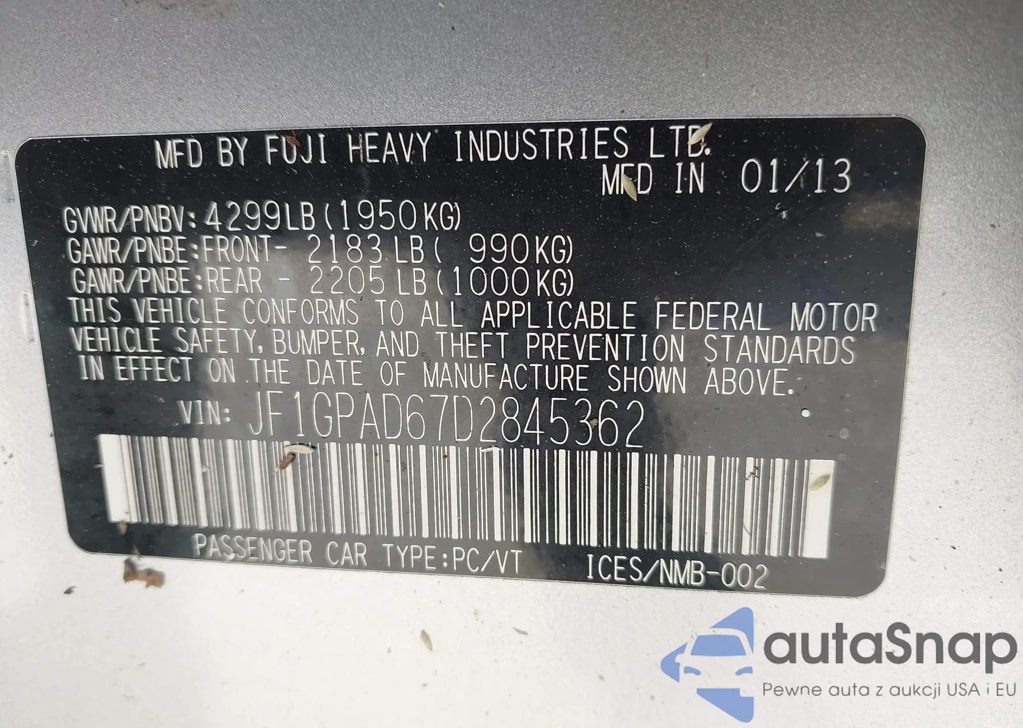 VIN: JF1GPAD67D2845362