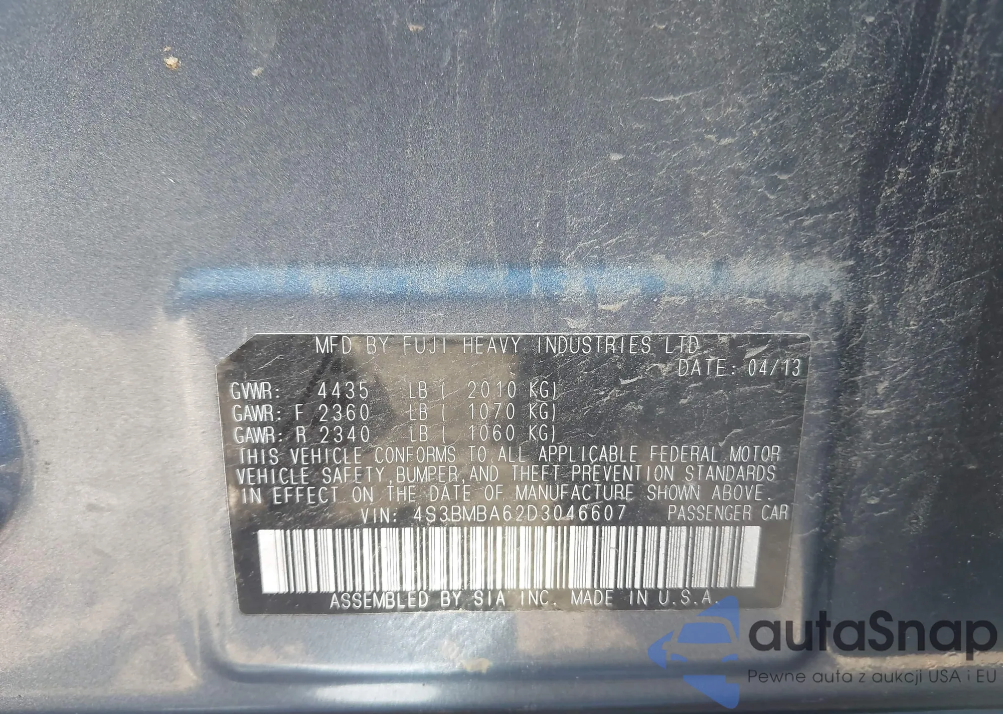 VIN: 4S3BMBA62D3046607