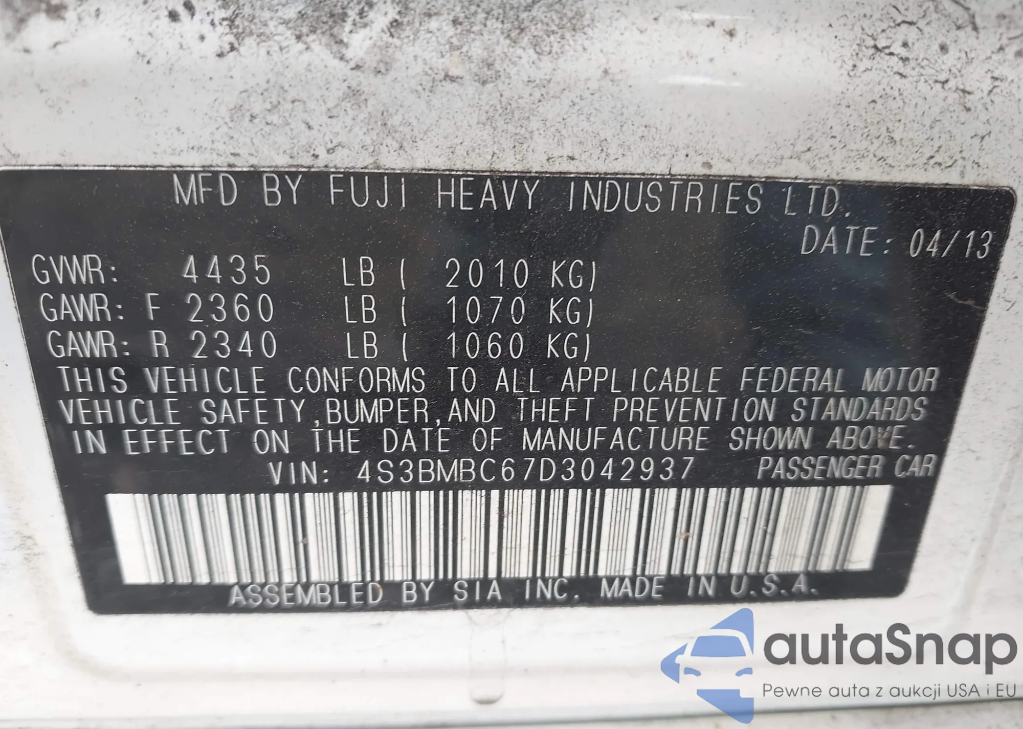 VIN: 4S3BMBC67D3042937