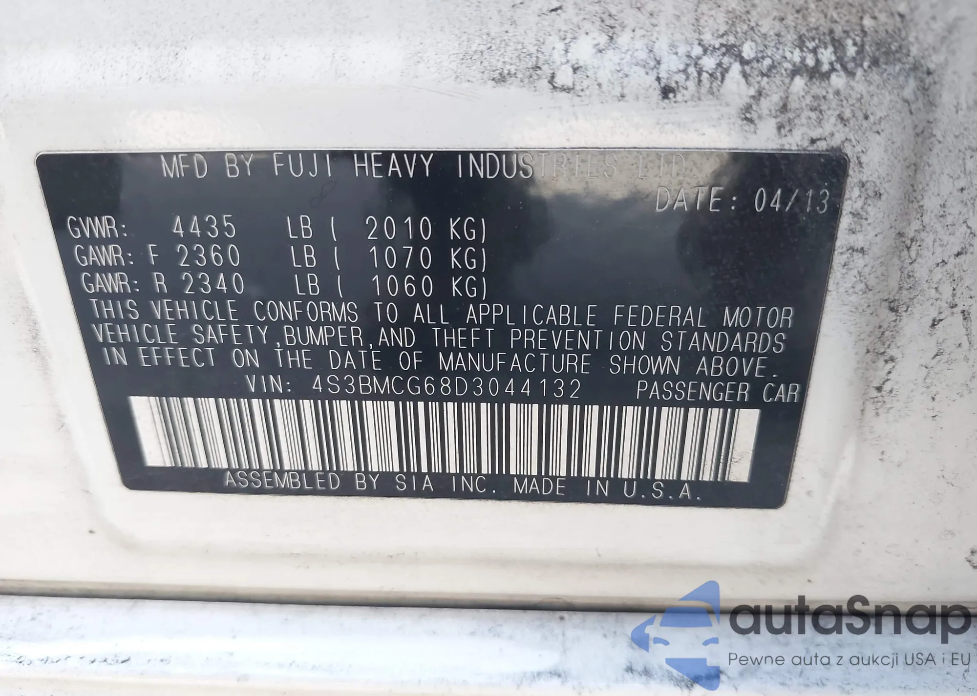 VIN: 4S3BMCG68D3044132