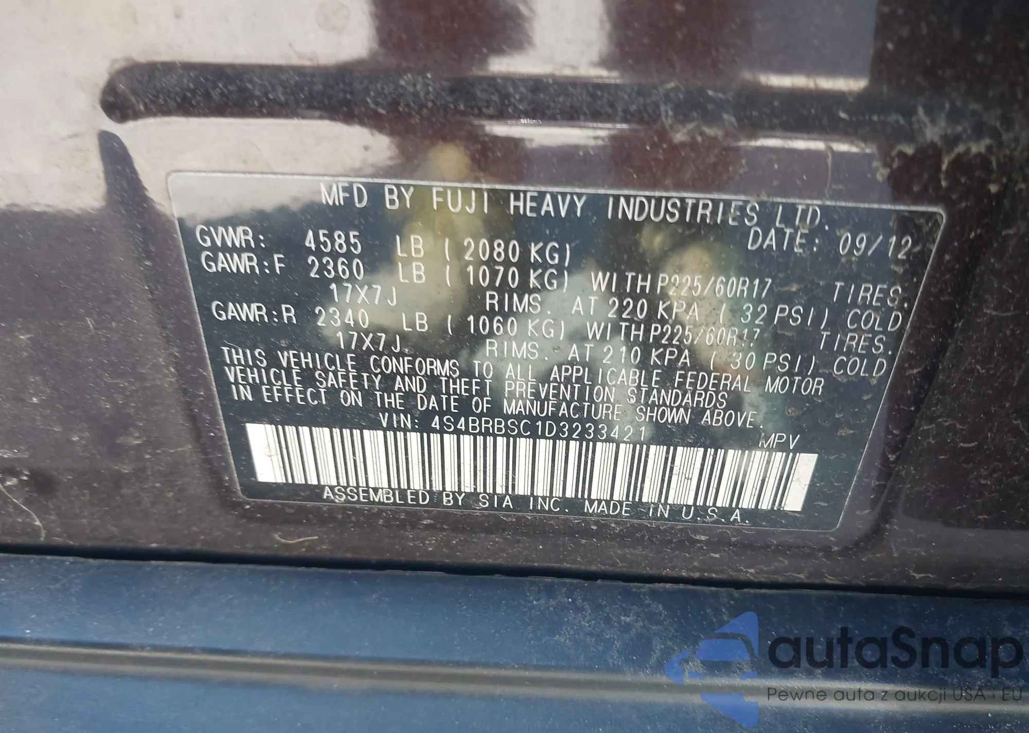 VIN: 4S4BRBSC1D3233421