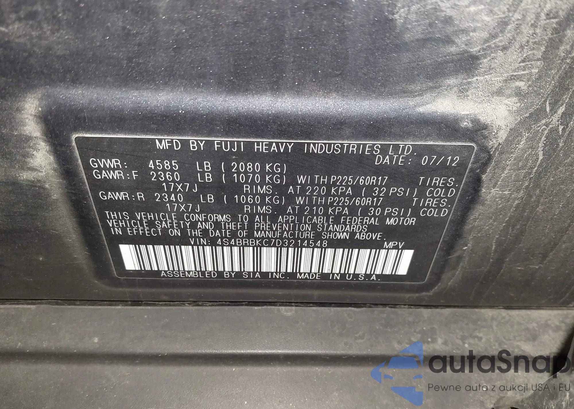 VIN: 4S4BRBKC7D3214548