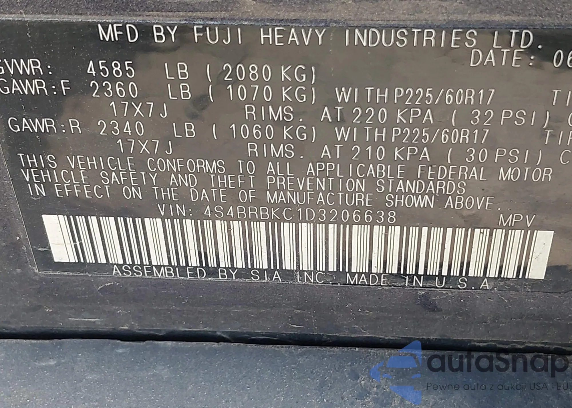 VIN: 4S4BRBKC1D3206638