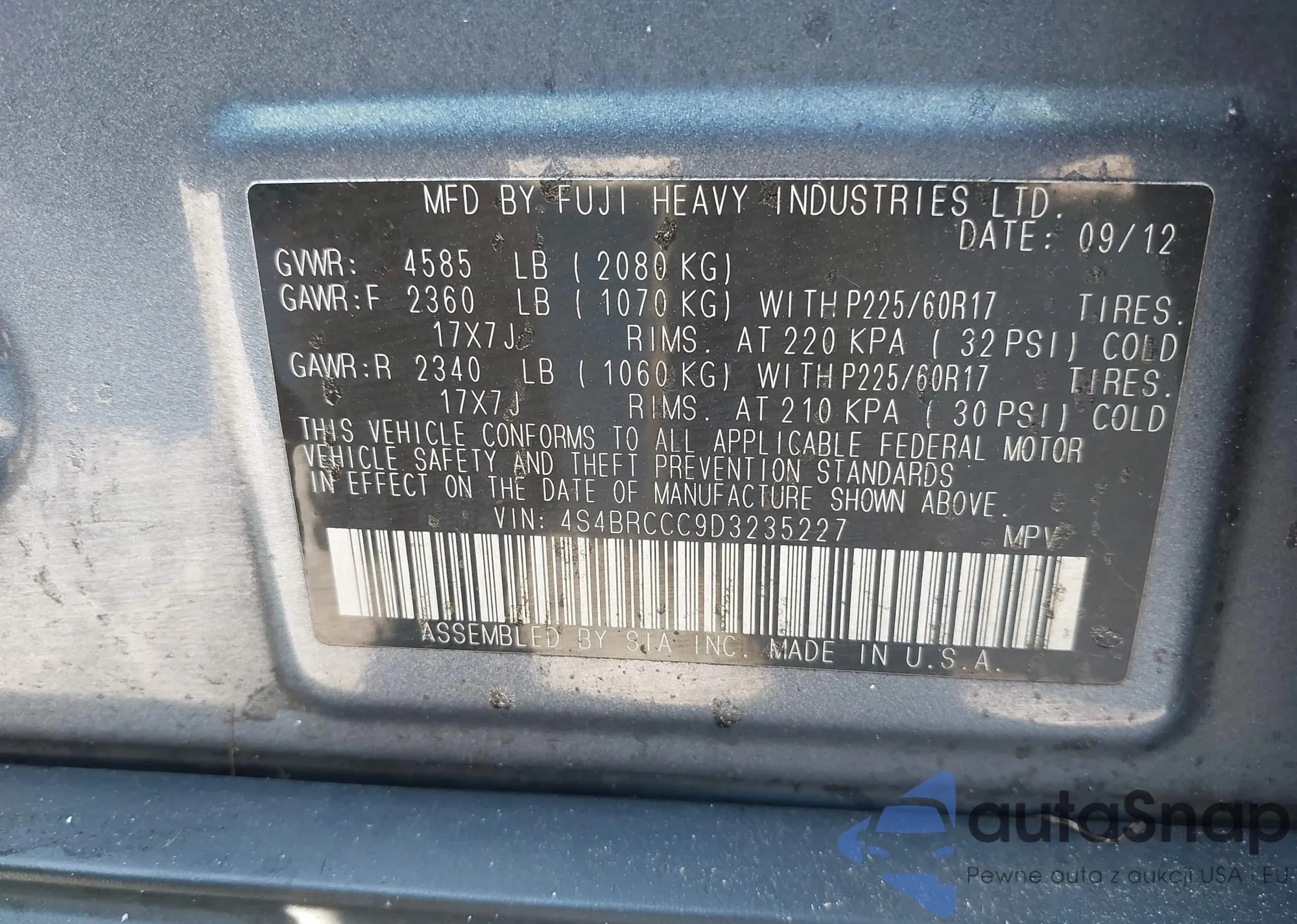 VIN: 4S4BRCCC9D3235227