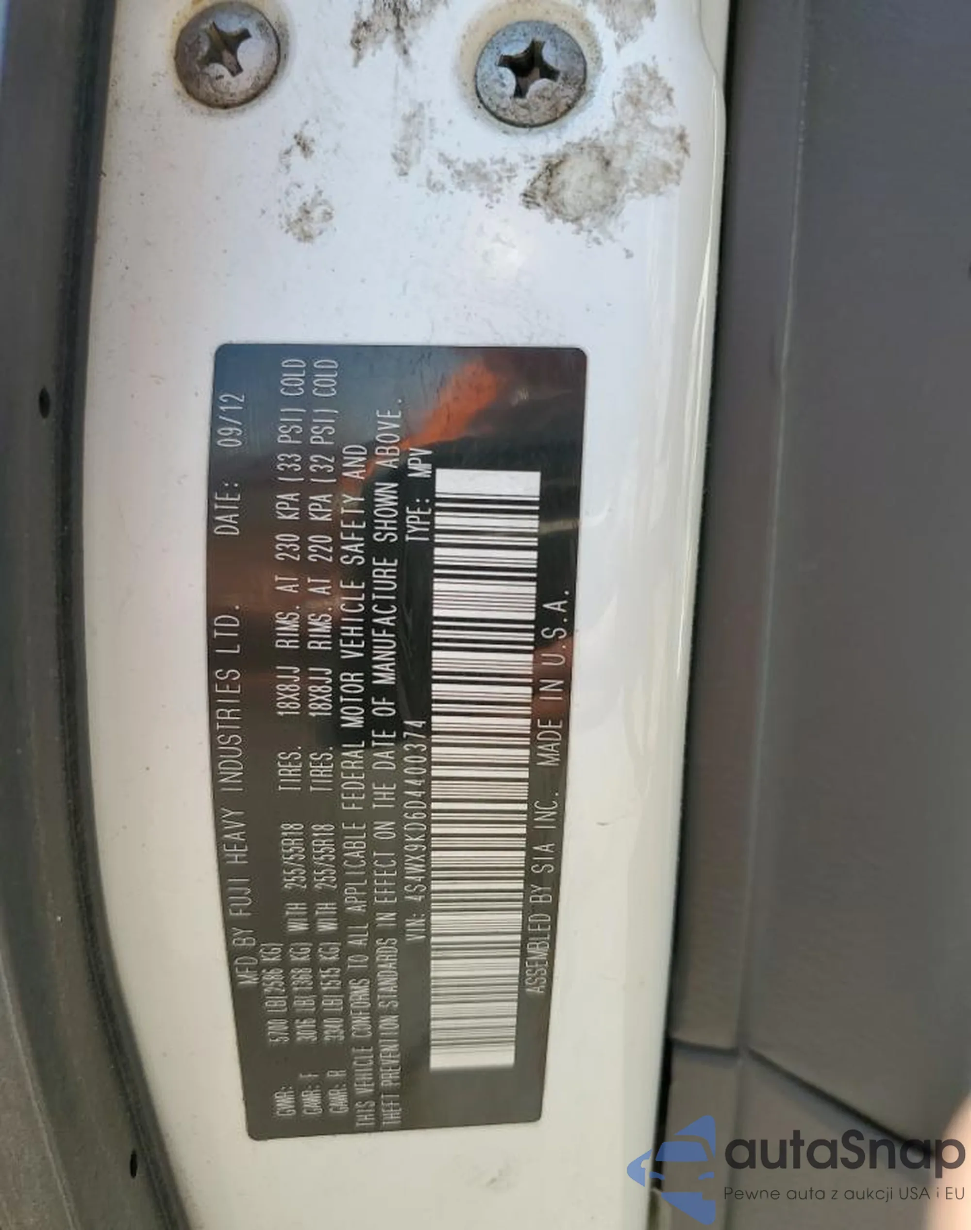 VIN: 4S4WX9KD6D4400374