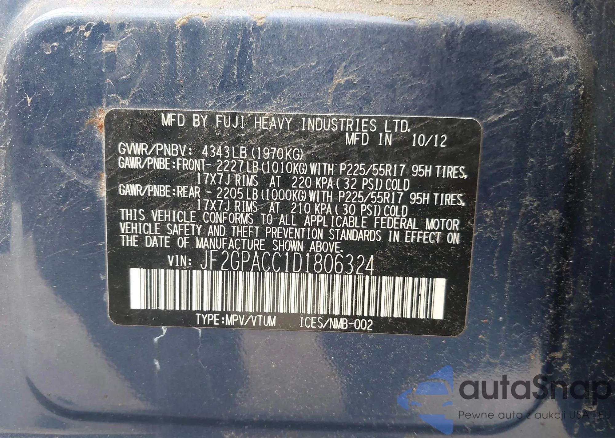 VIN: JF2GPACC1D1806324