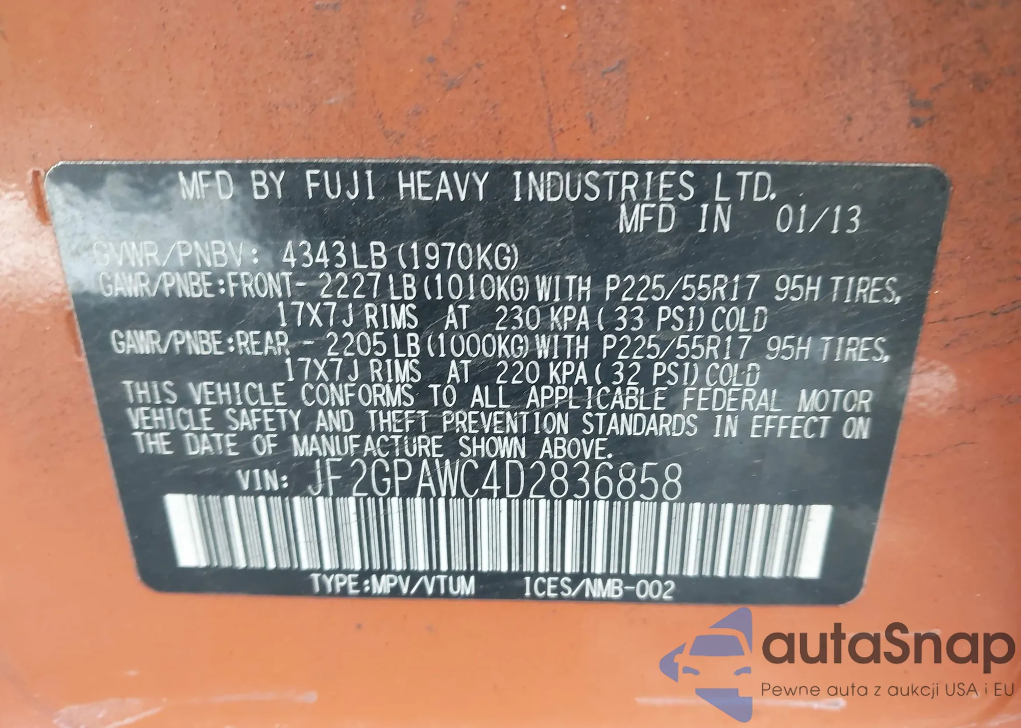 VIN: JF2GPAWC4D2836858