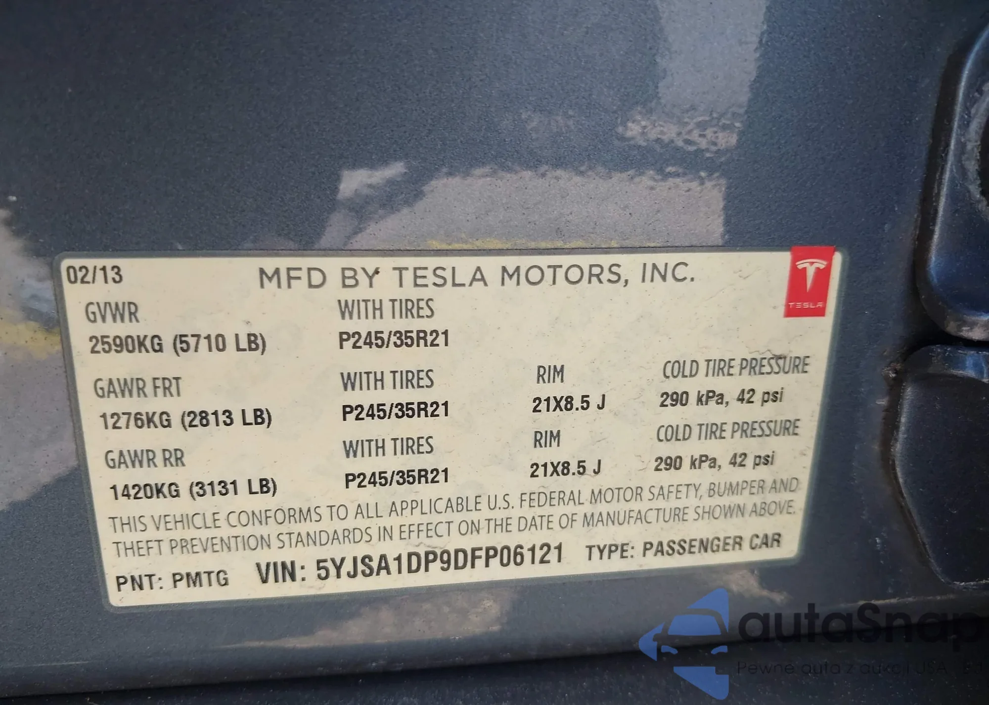VIN: 5YJSA1DP9DFP06121