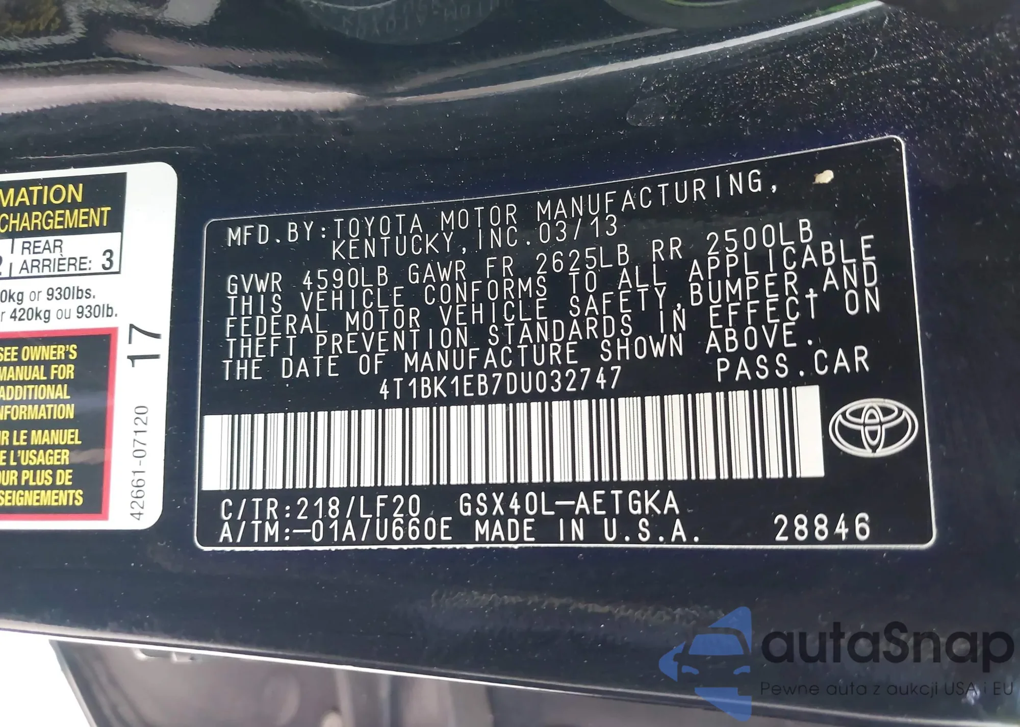 VIN: 4T1BK1EB7DU032747