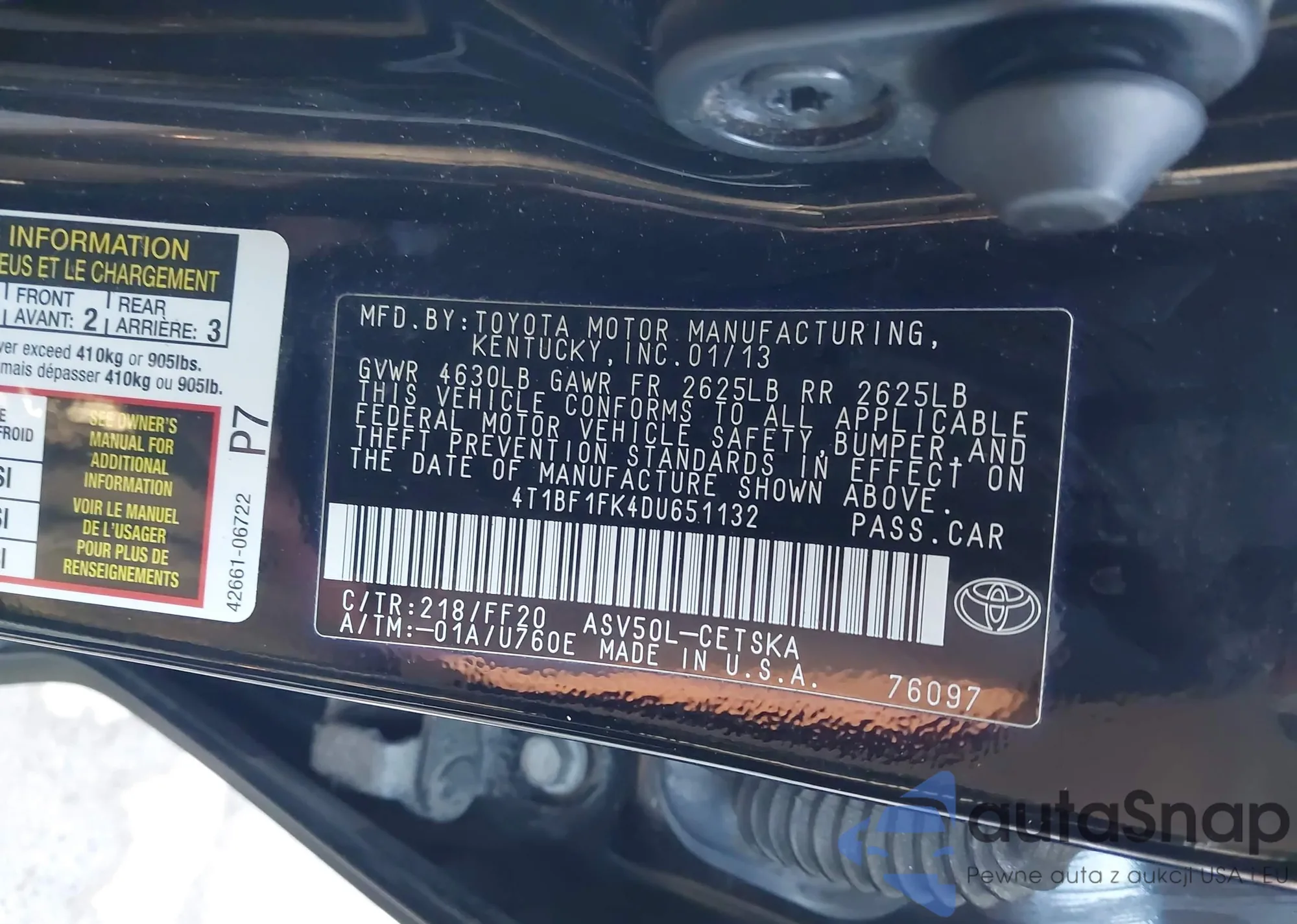 VIN: 4T1BF1FK4DU651132