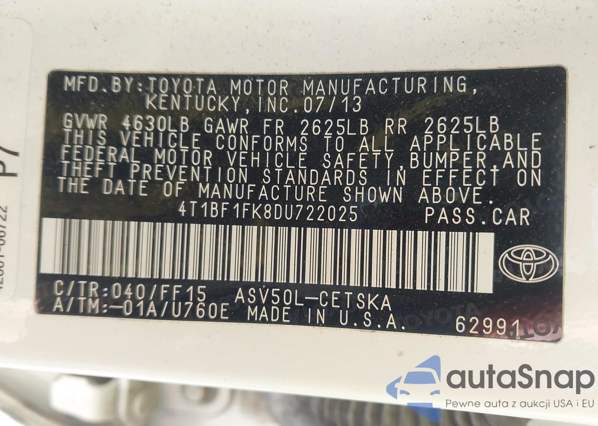 VIN: 4T1BF1FK8DU722025