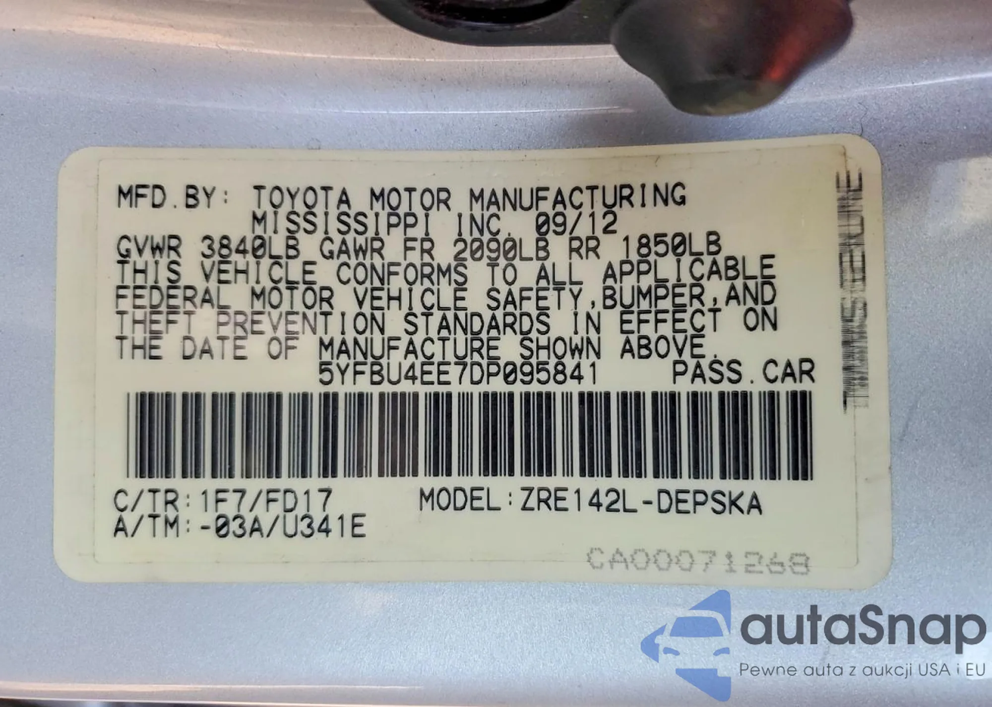 VIN: 5YFBU4EE7DP095841