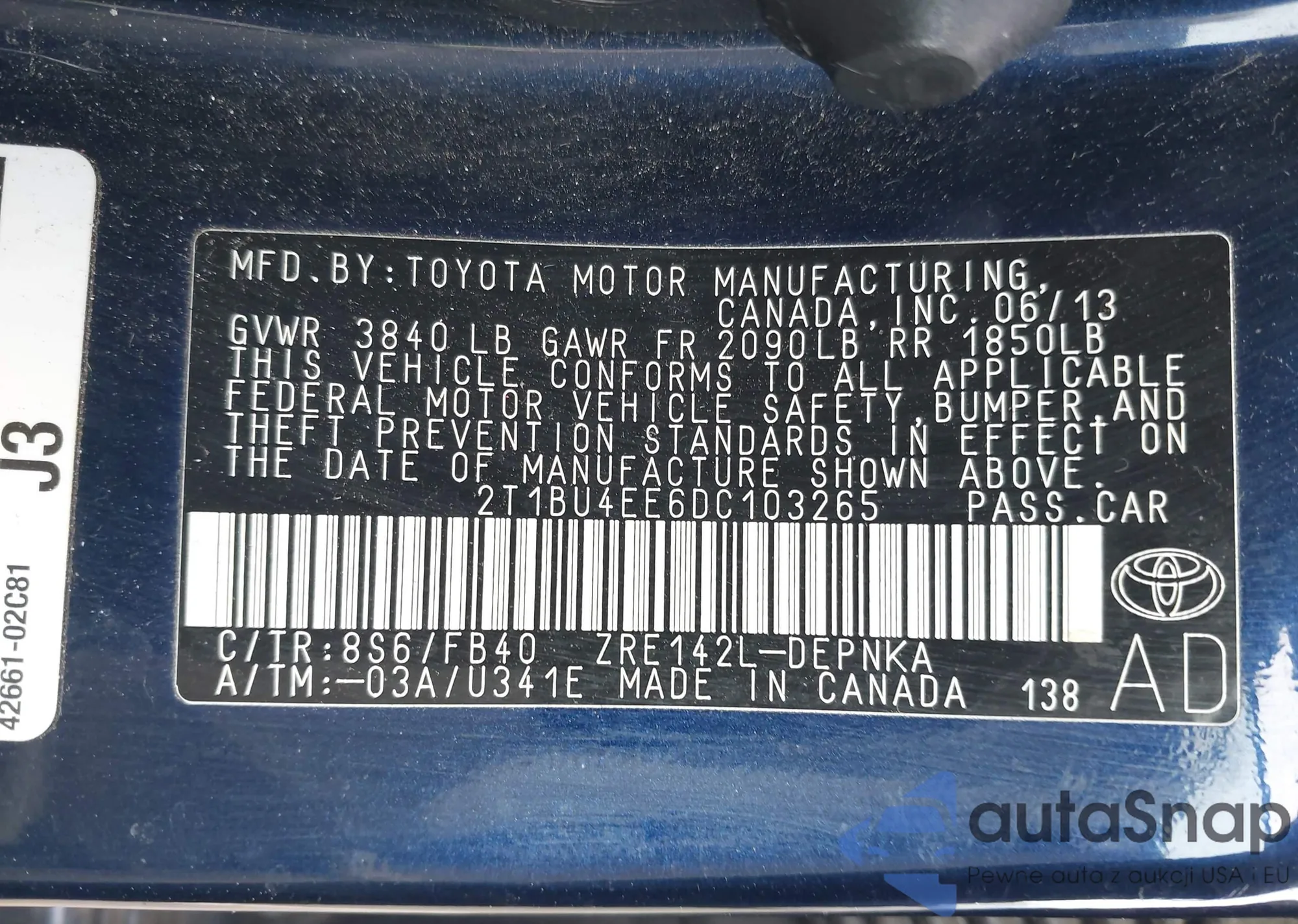 VIN: 2T1BU4EE6DC103265