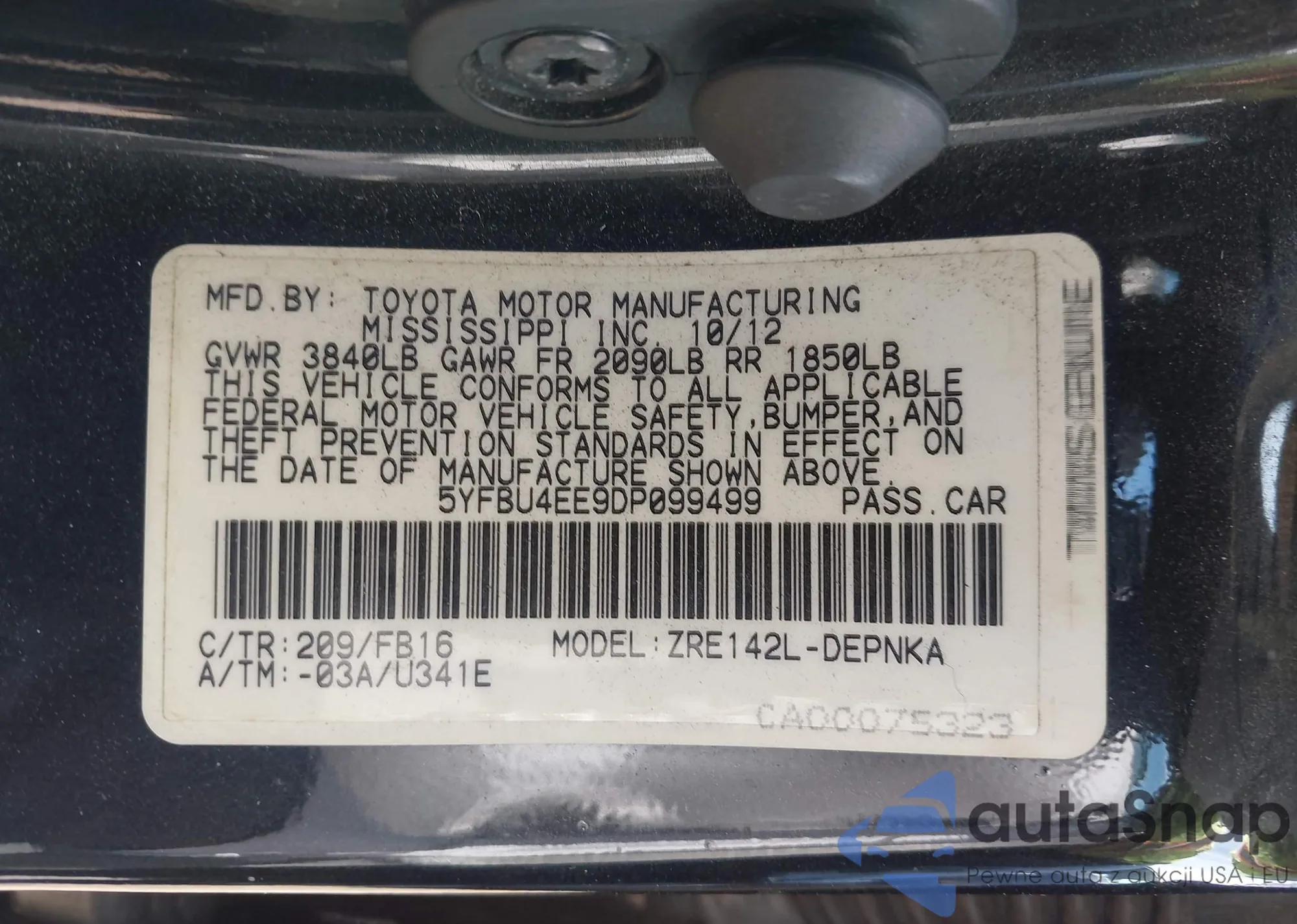 Автомобиль Toyota Corolla 2013 (VIN 5YFBU4EE9DP099499) ранее не участвовал в торгах. Документы чистые, пробег соответствует или ниже среднего по рынку. Продаётся страховой компанией — рекомендуем покупку. Доставка в порт займет около 6–8 недель.