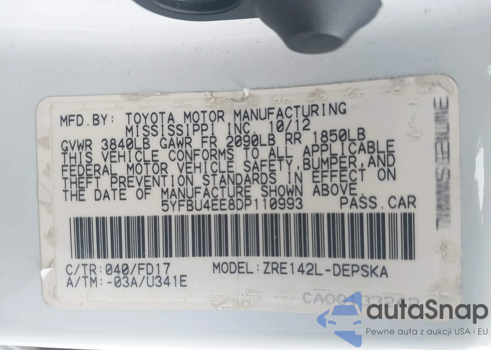 VIN: 5YFBU4EE8DP110993