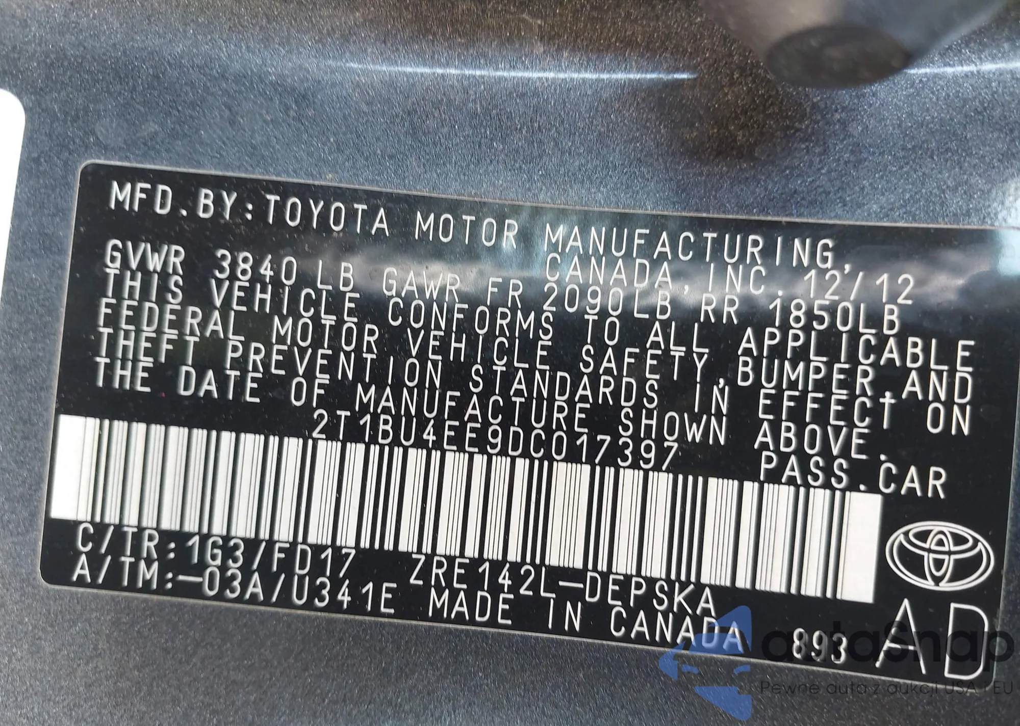 VIN: 2T1BU4EE9DC017397