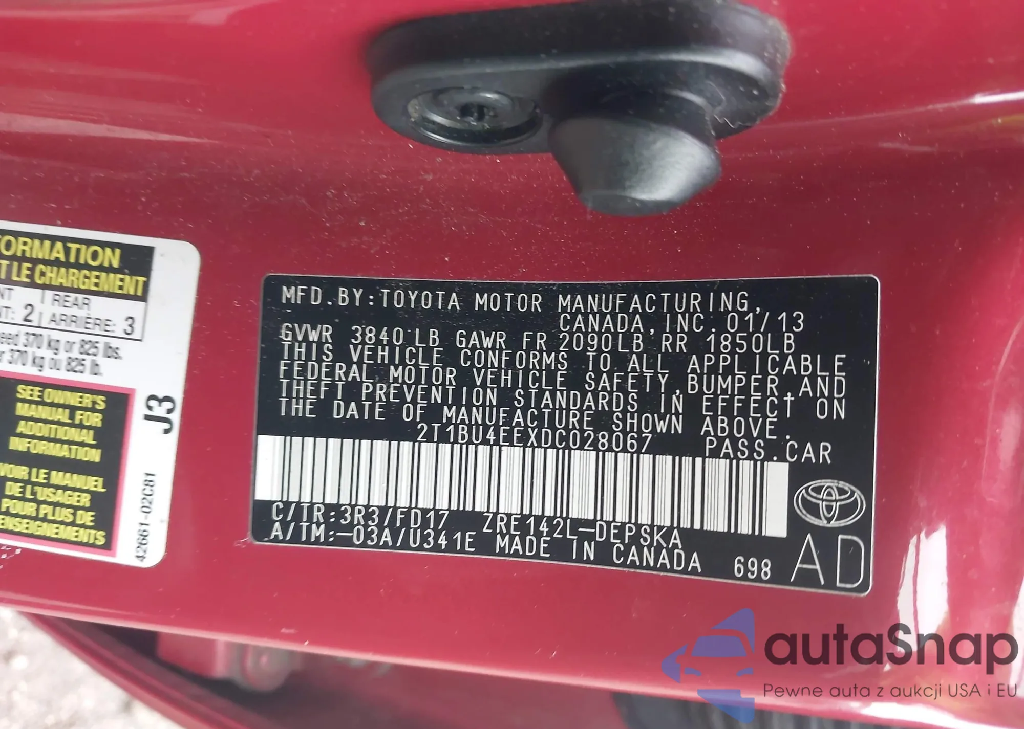 VIN: 2T1BU4EEXDC028067