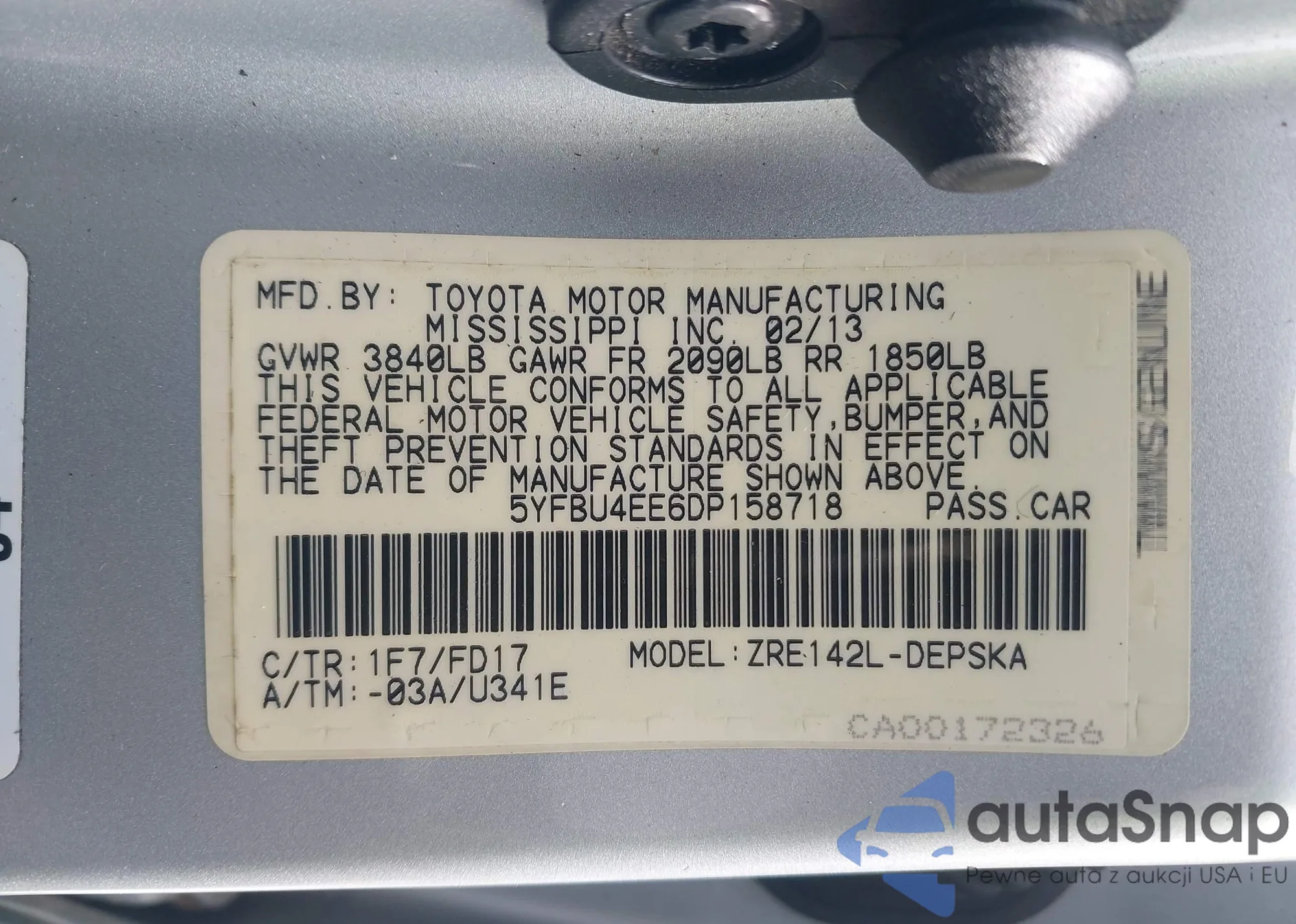 VIN: 5YFBU4EE6DP158718