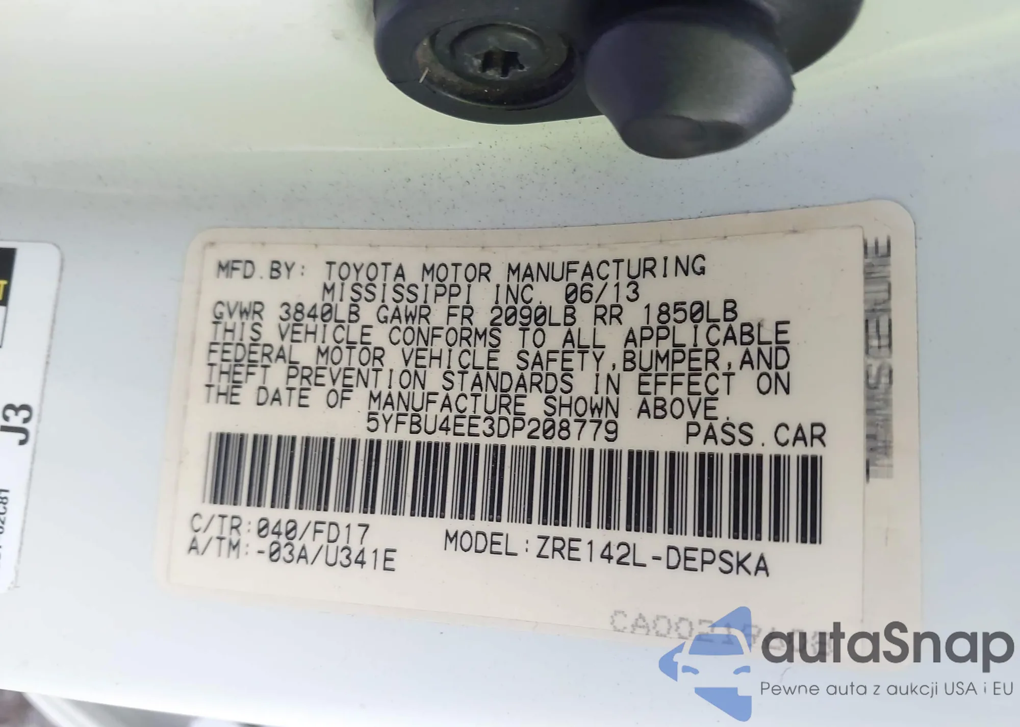 VIN: 5YFBU4EE3DP208779