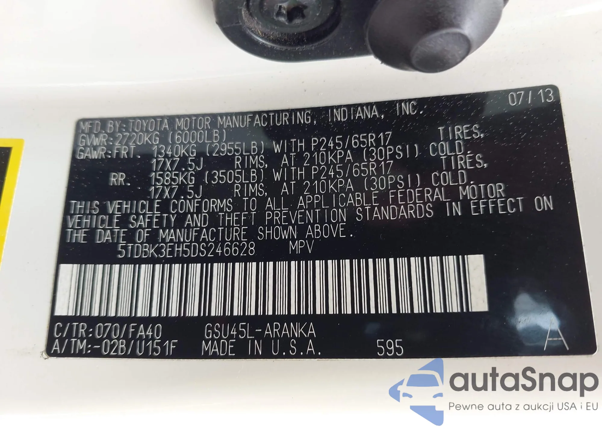 VIN: 5TDBK3EH5DS246628