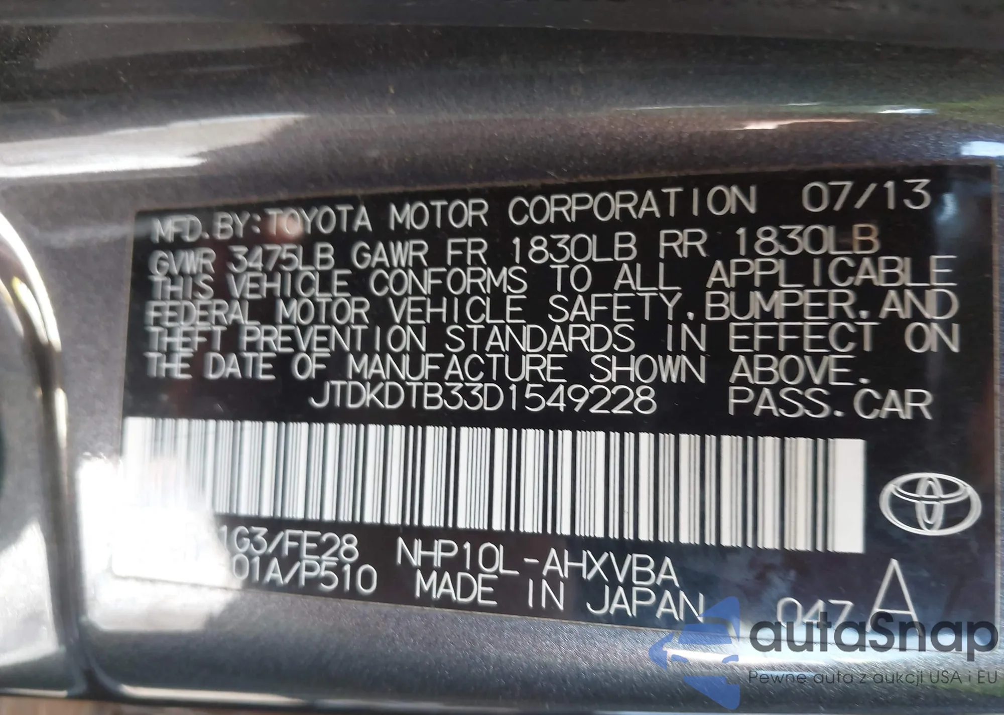 VIN: JTDKDTB33D1549228