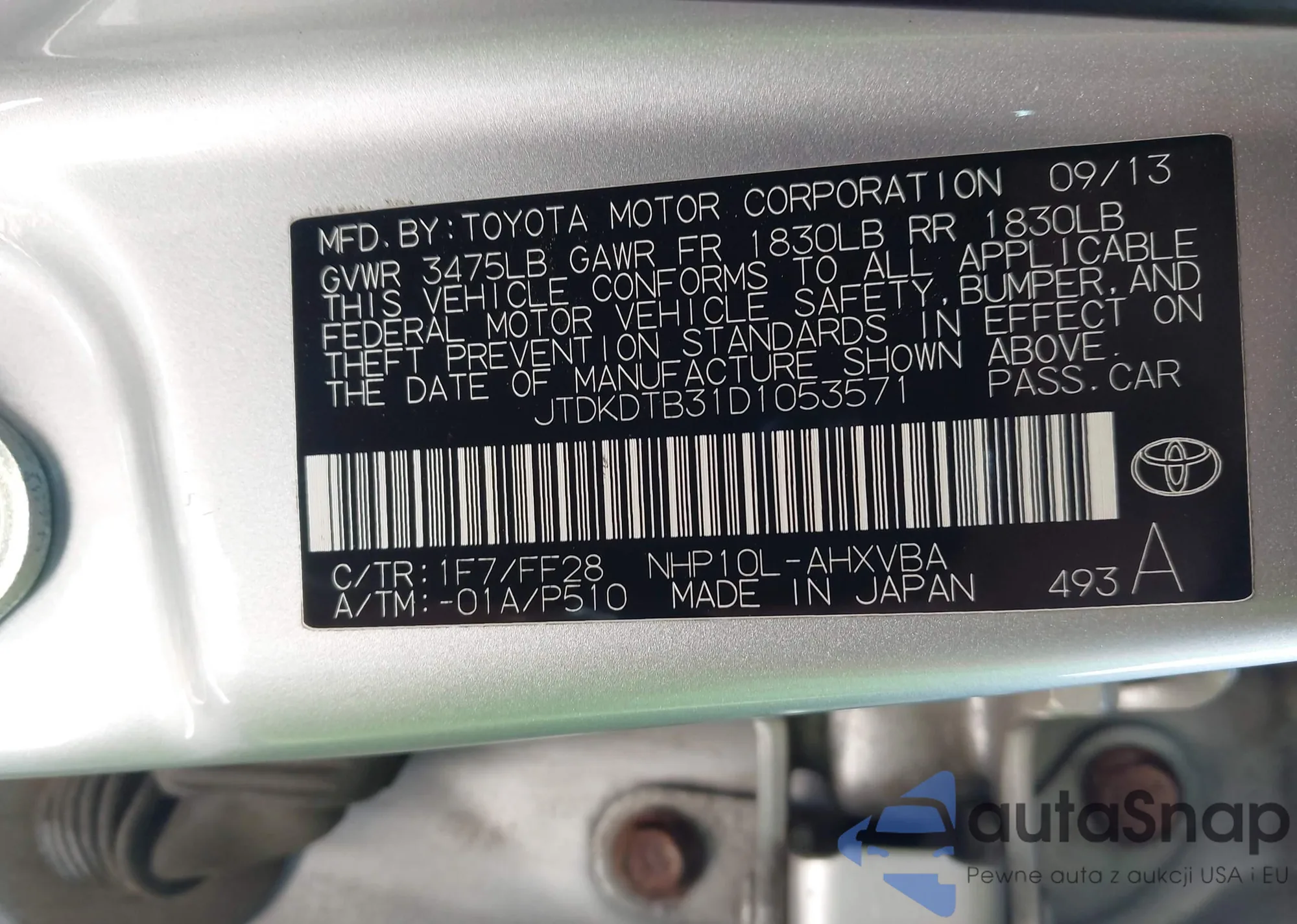 VIN: JTDKDTB31D1053571