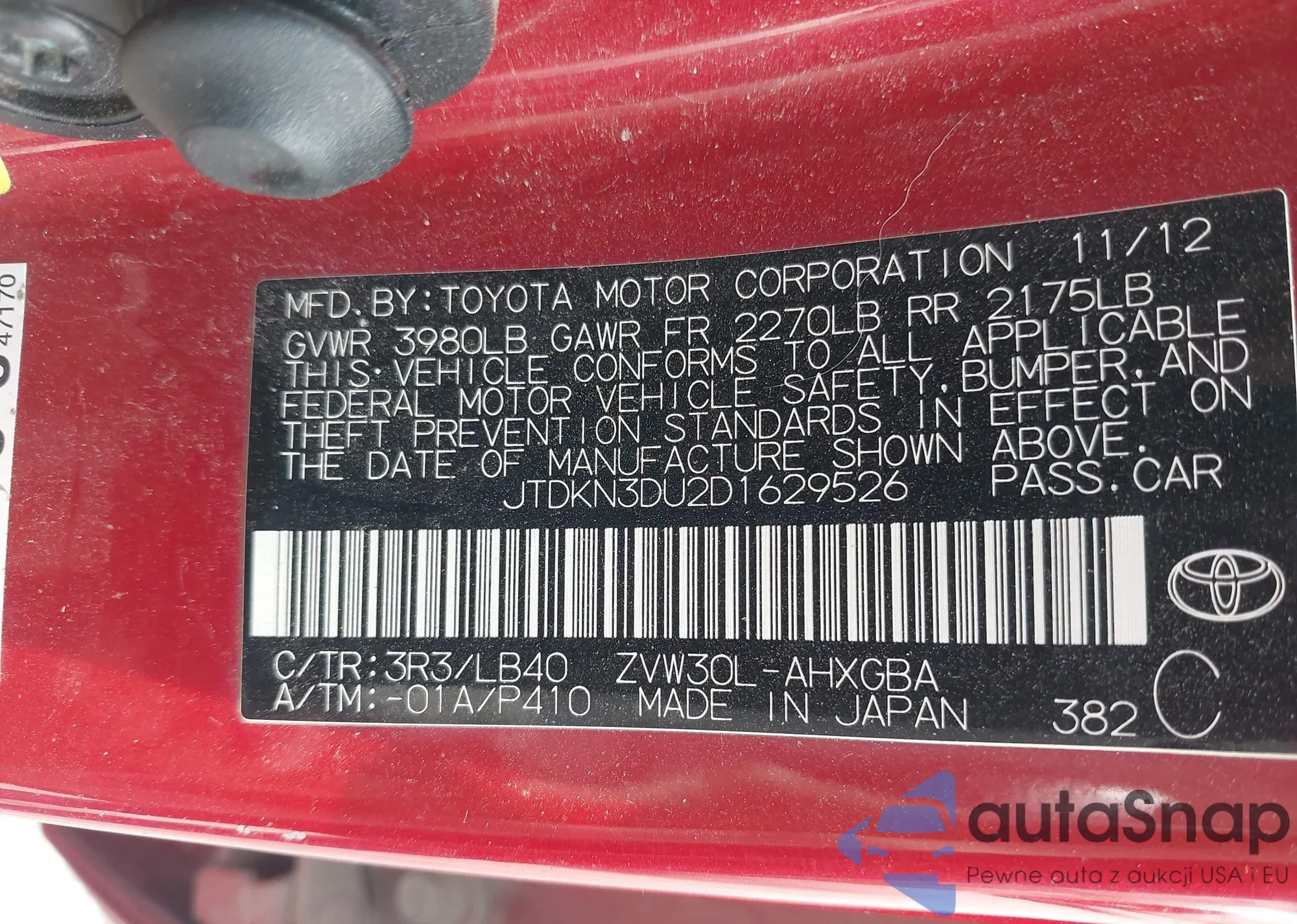 JTDKN3DU2D1629526 IAAI