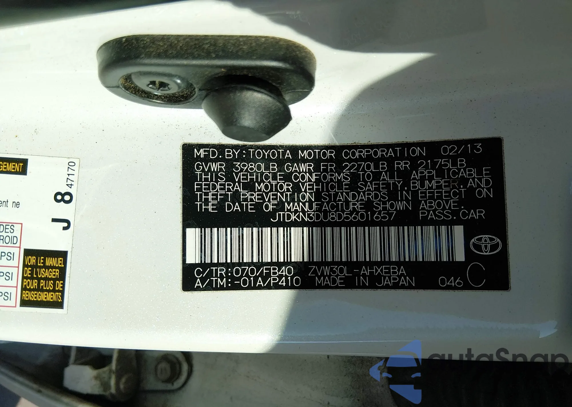 JTDKN3DU8D5601657 IAAI
