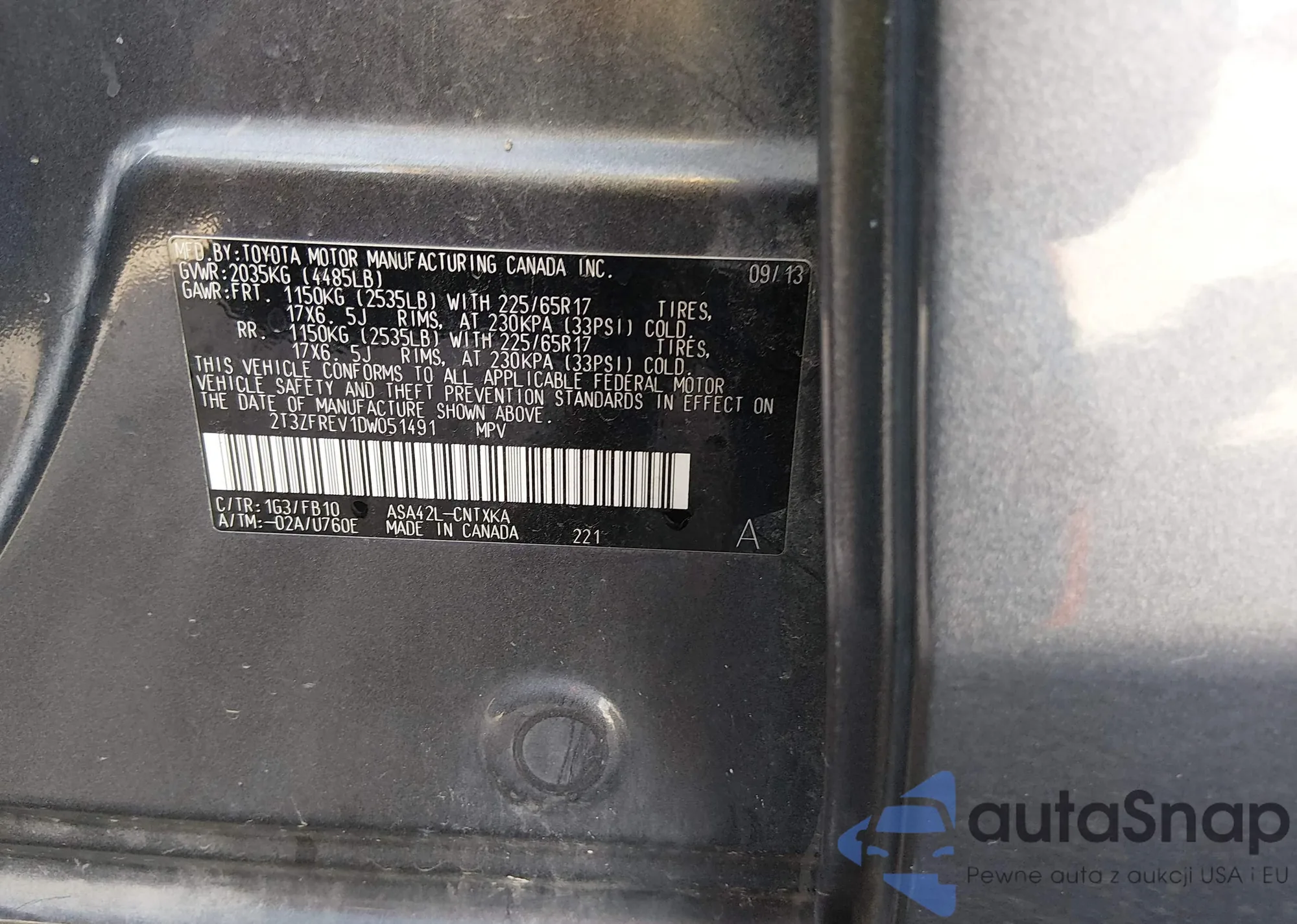 Автомобиль Toyota RAV 4 2013 (VIN 2T3ZFREV1DW051491) ранее не участвовал в торгах. Документы чистые, пробег соответствует или ниже среднего по рынку. Продаётся страховой компанией — рекомендуем покупку. Доставка в порт займет около 6–8 недель.