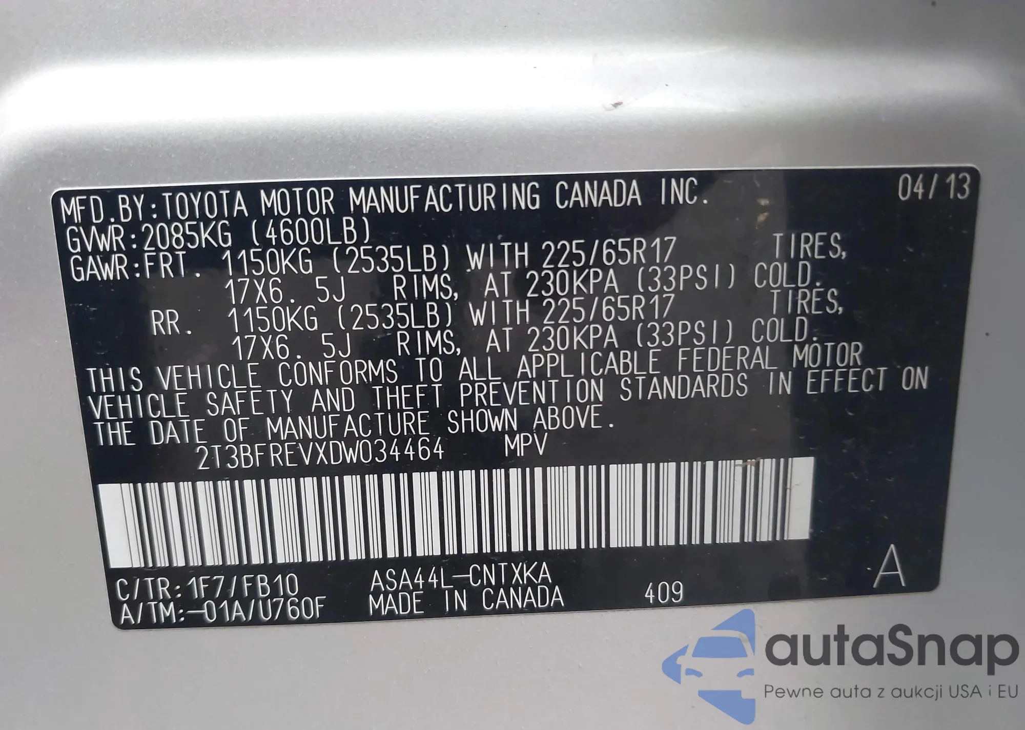 VIN: 2T3BFREVXDW034464