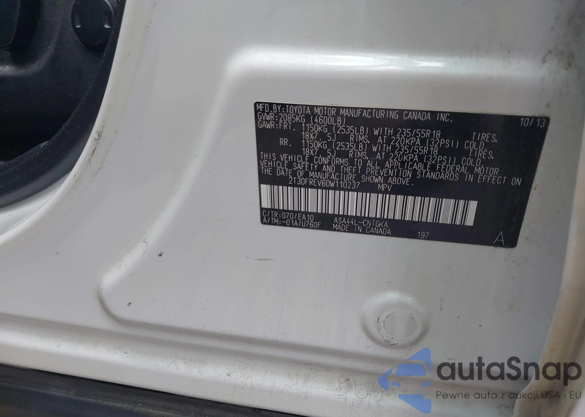 VIN: 2T3DFREV6DW110237