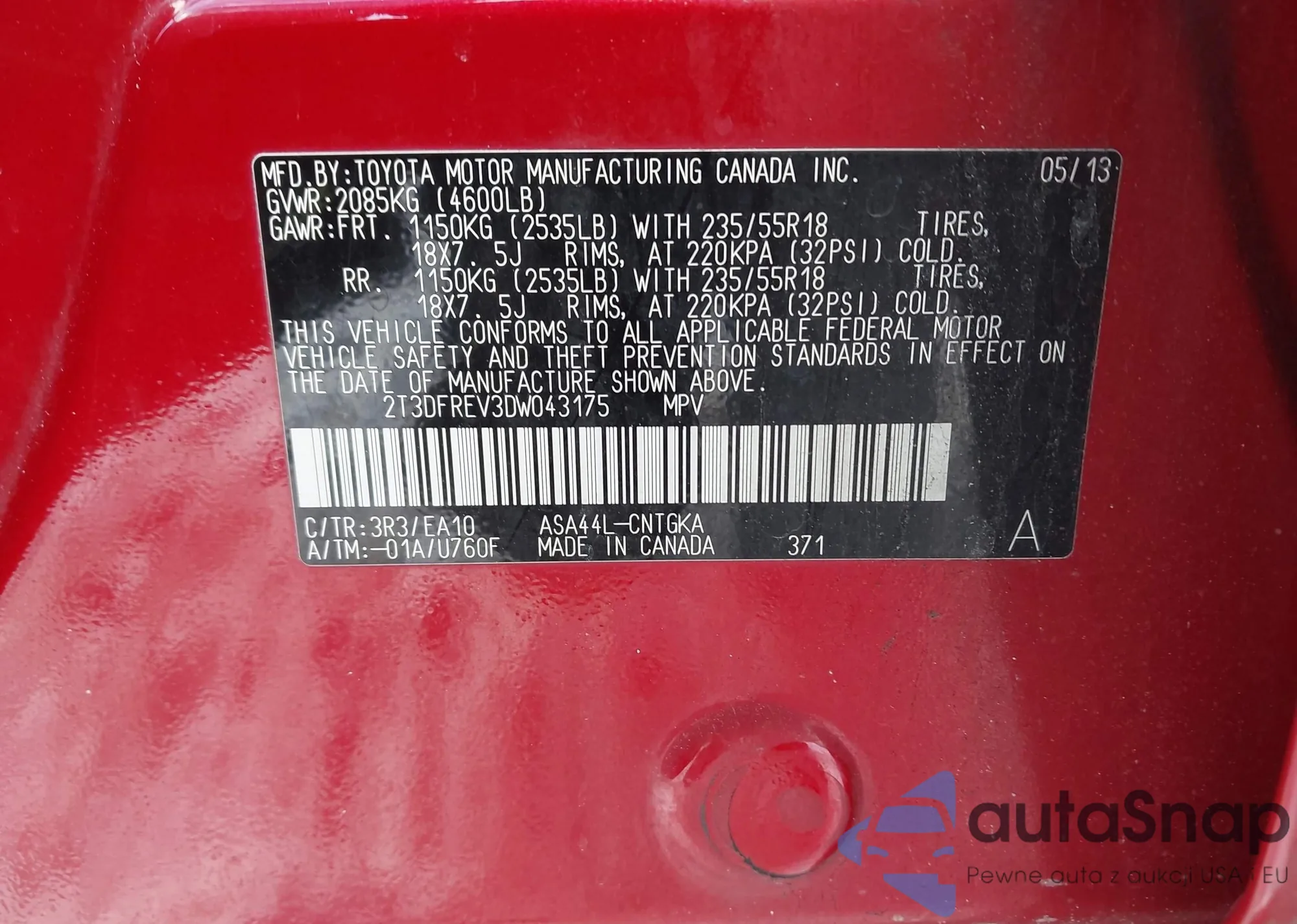 VIN: 2T3DFREV3DW043175