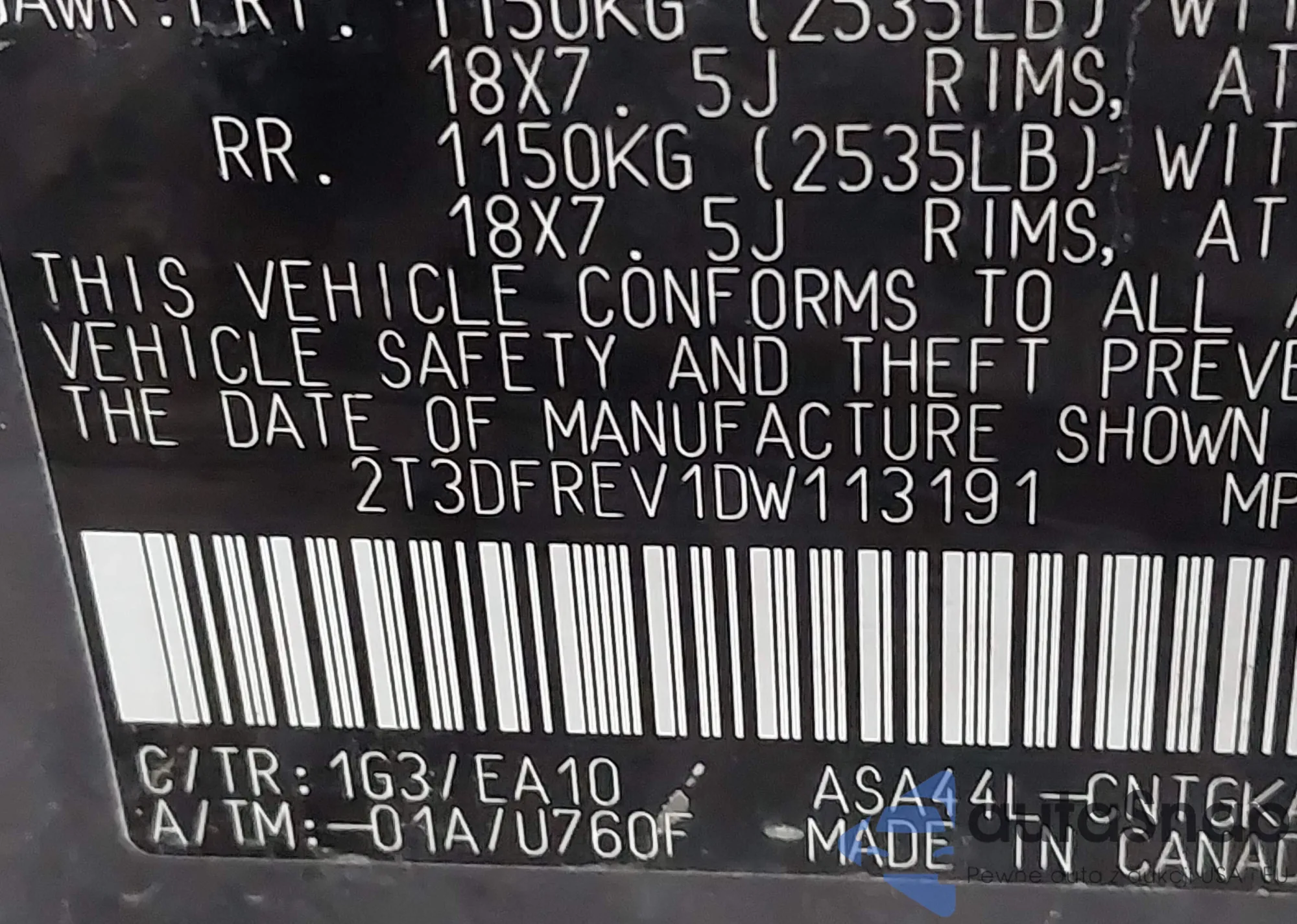 VIN: 2T3DFREV1DW113191