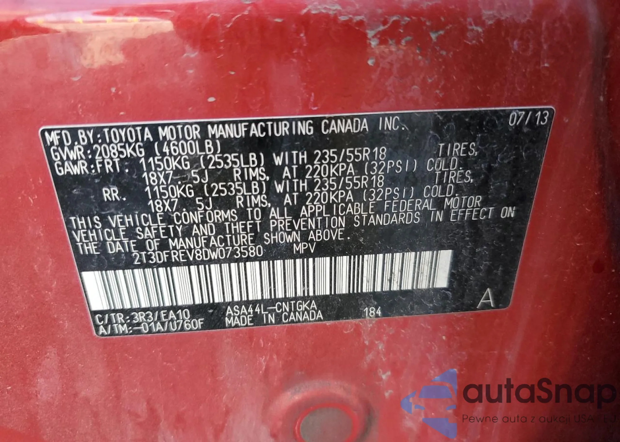 VIN: 2T3DFREV8DW073580