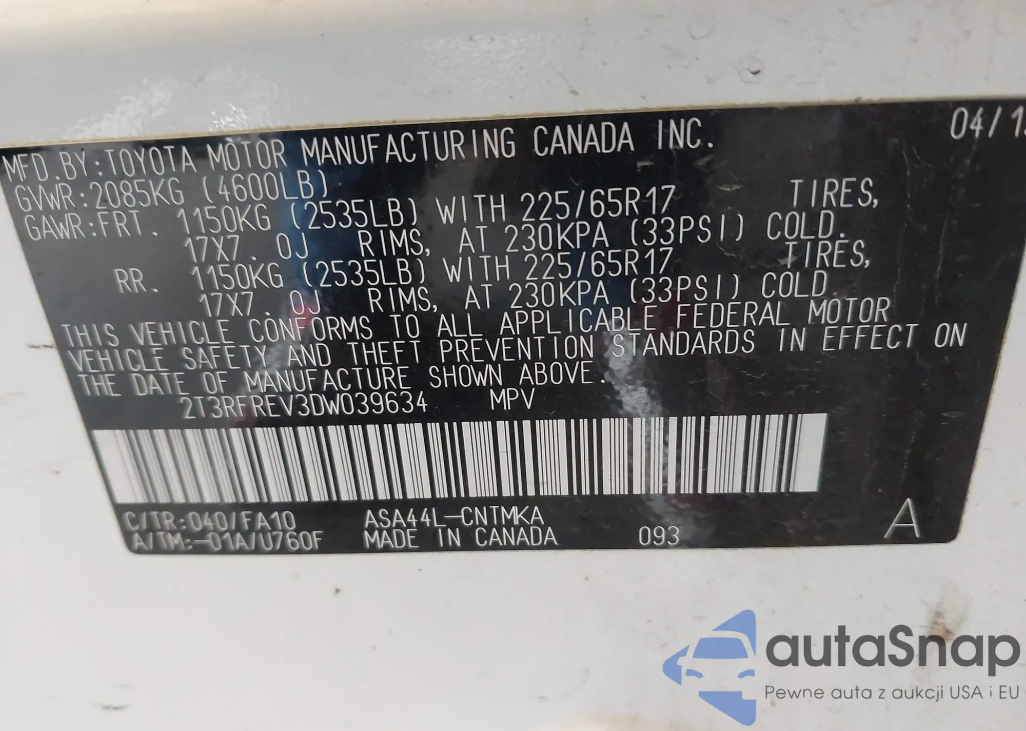 VIN: 2T3RFREV3DW039634