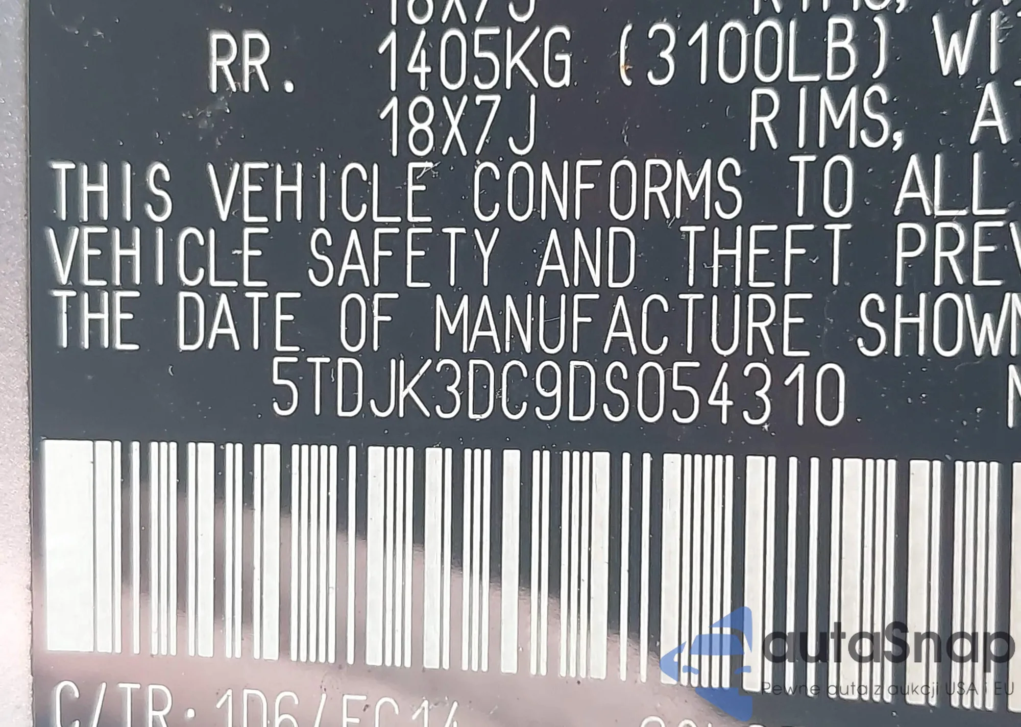 VIN: 5TDJK3DC9DS054310