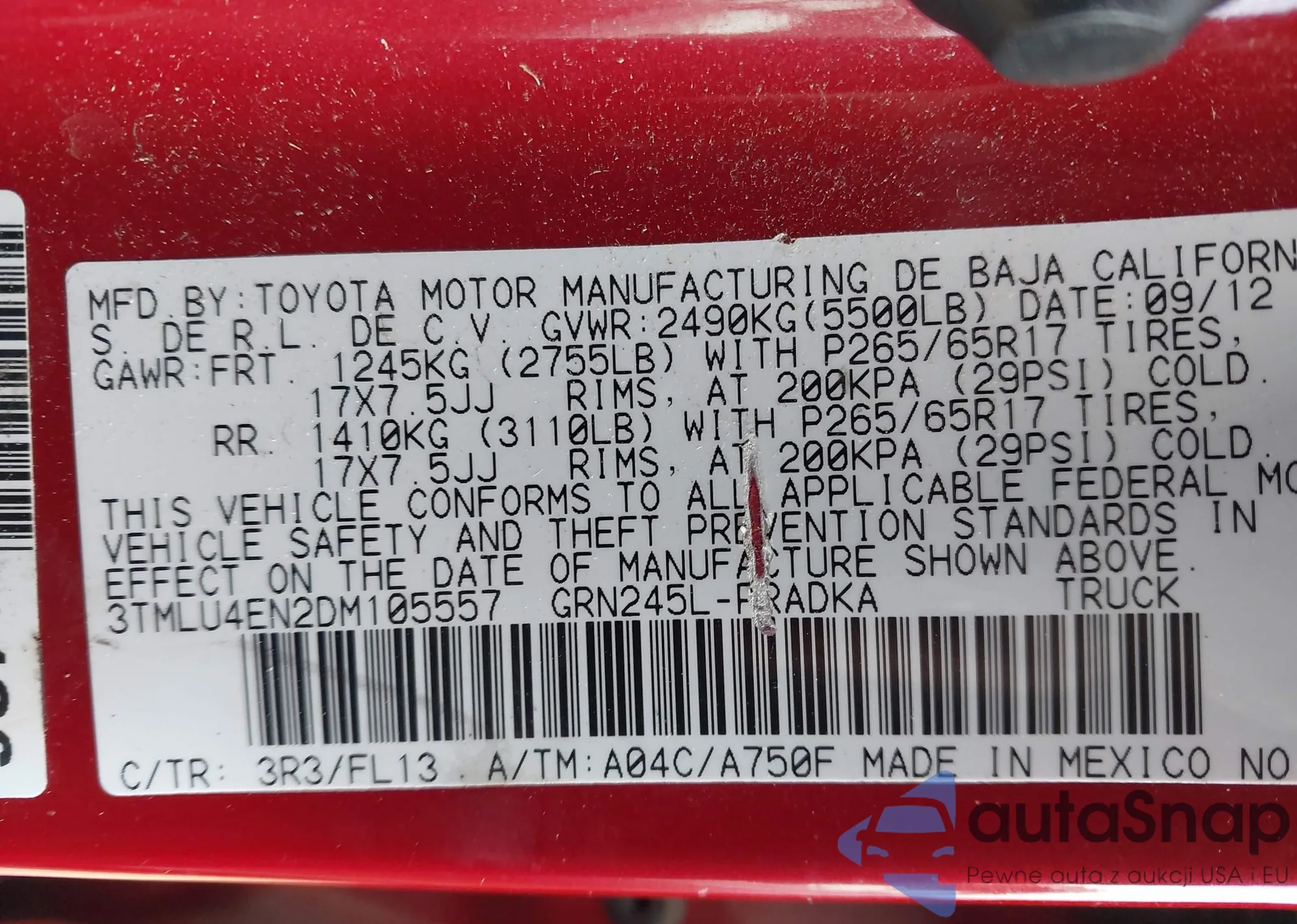 VIN: 3TMLU4EN2DM105557